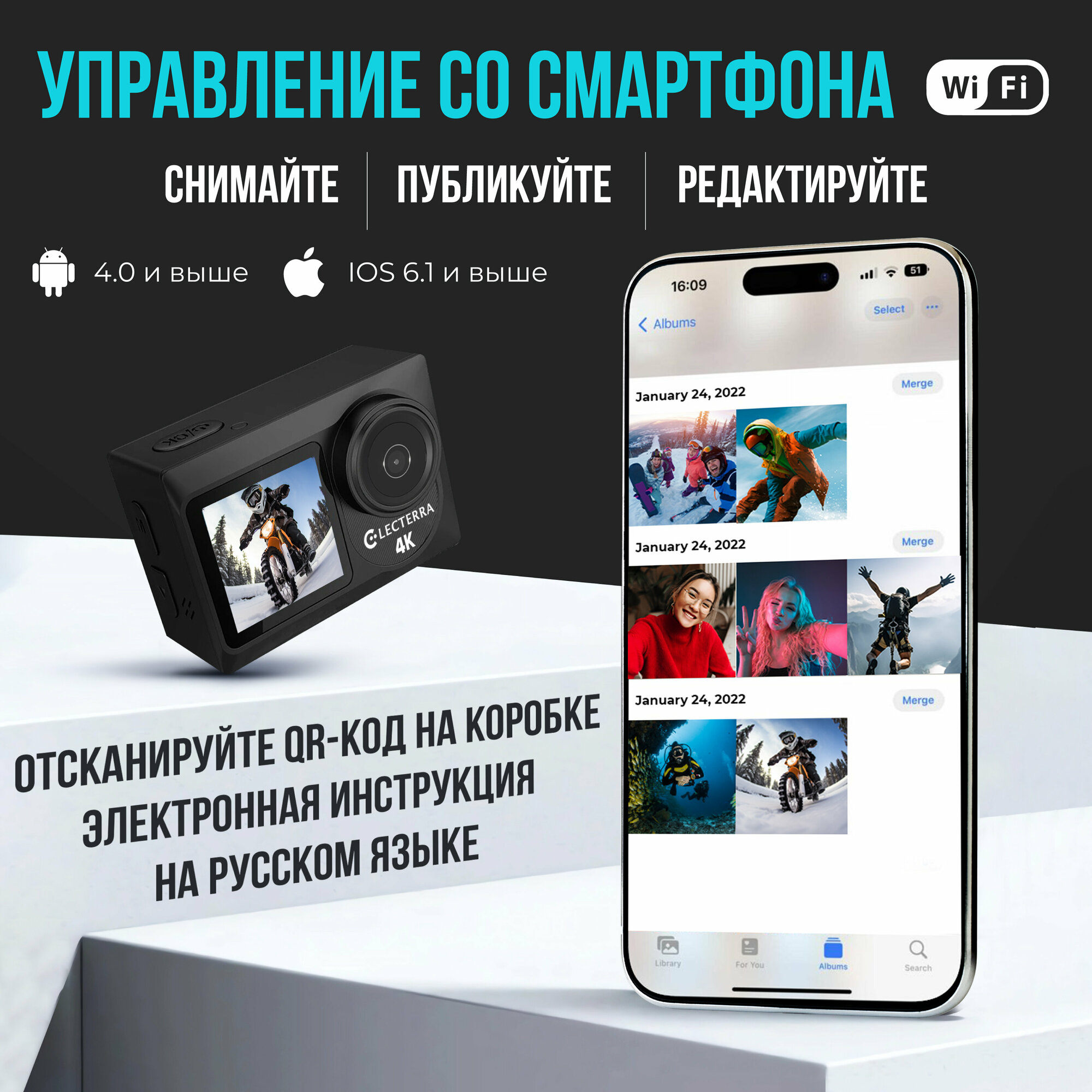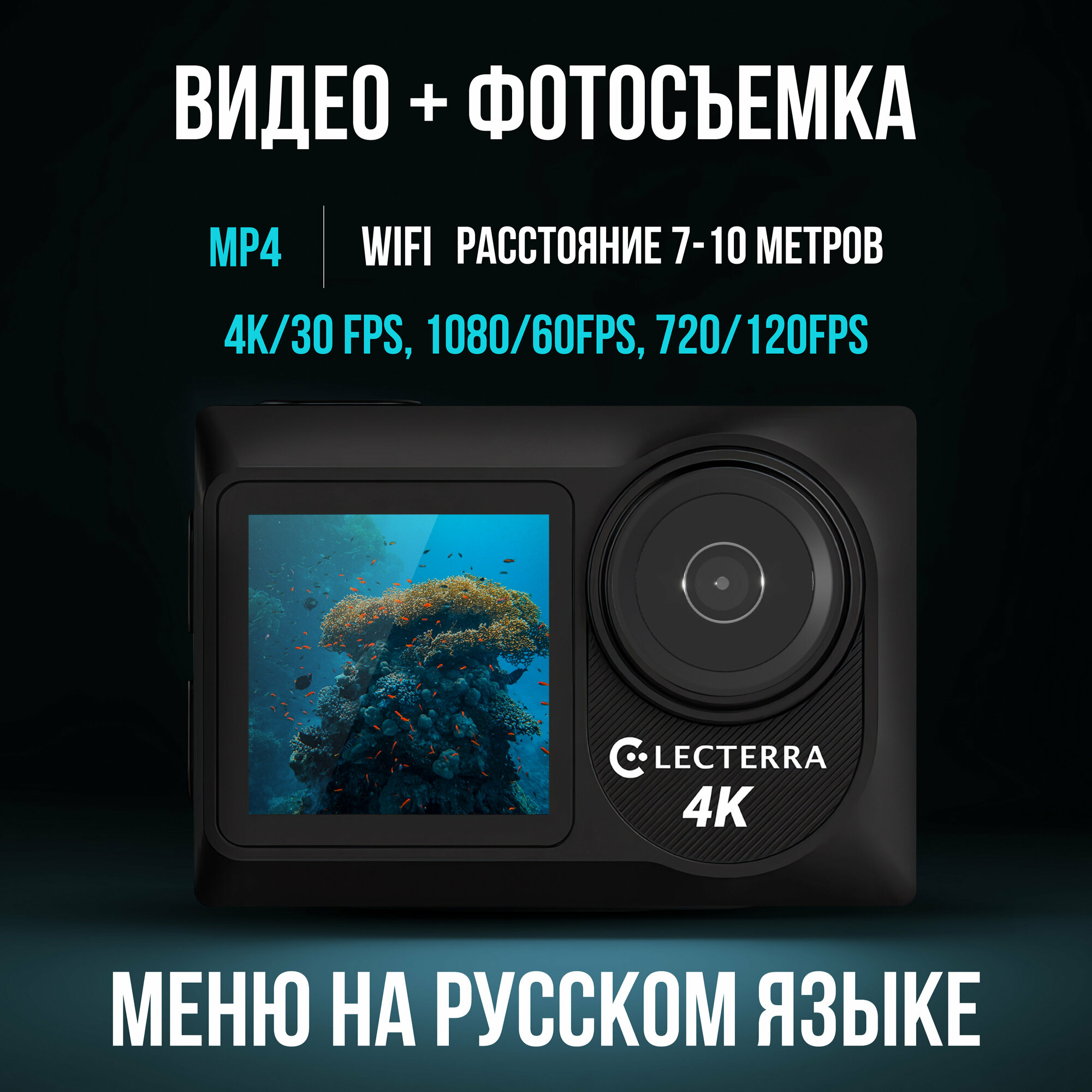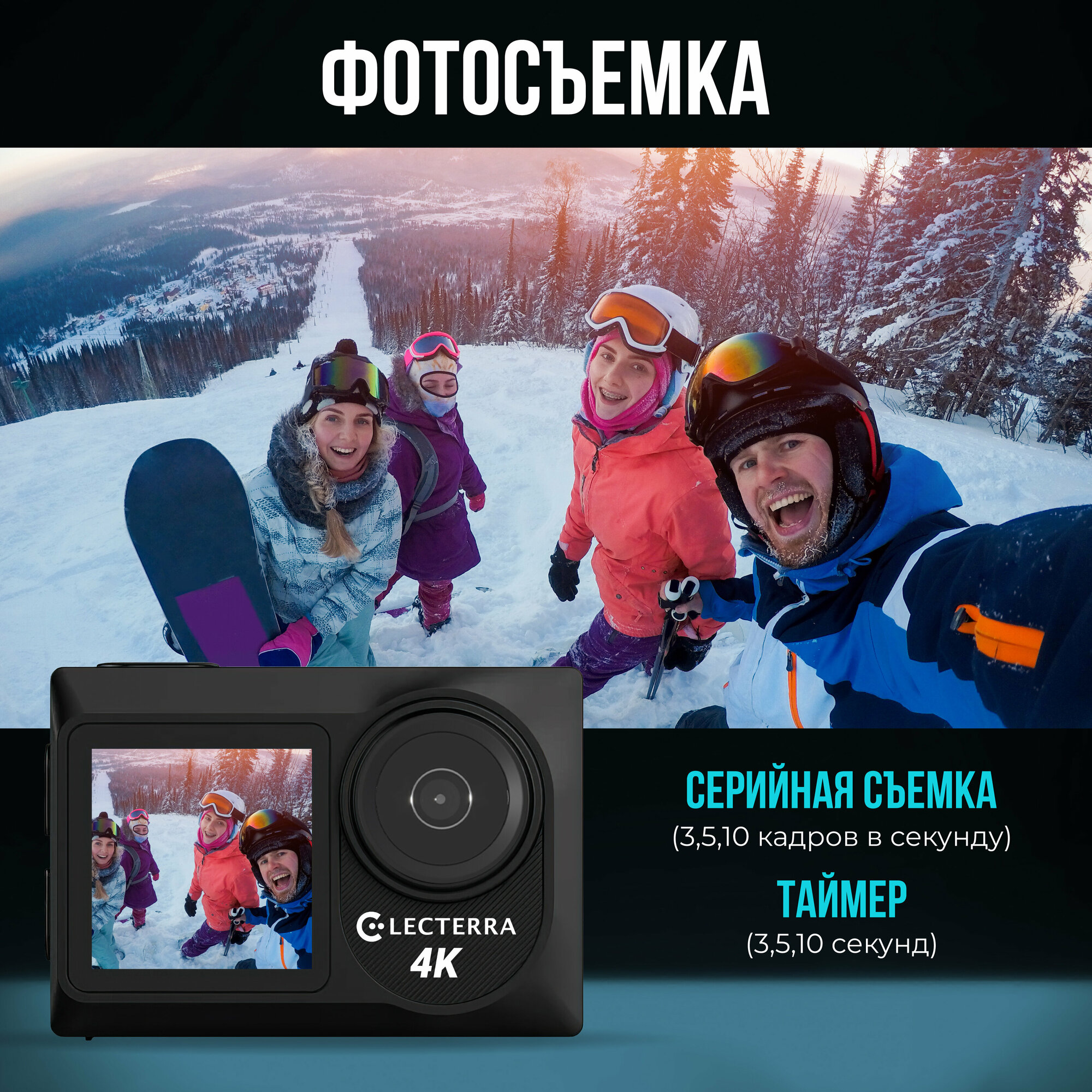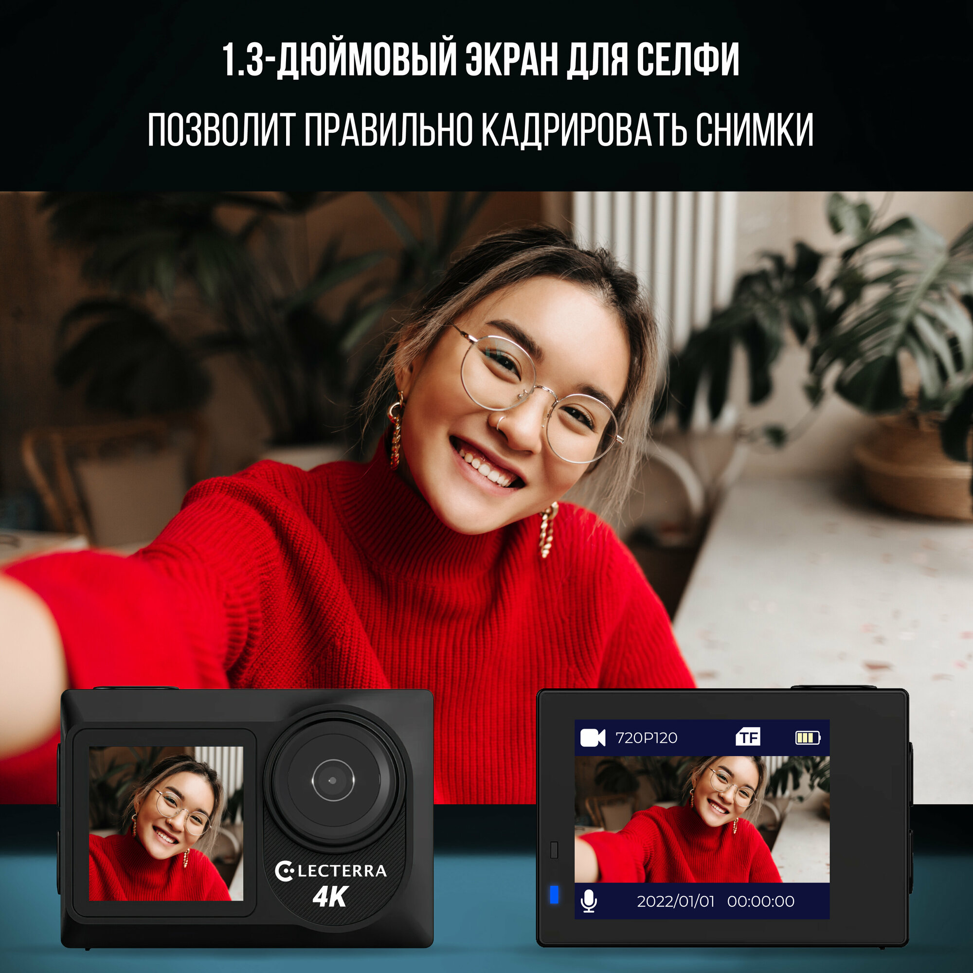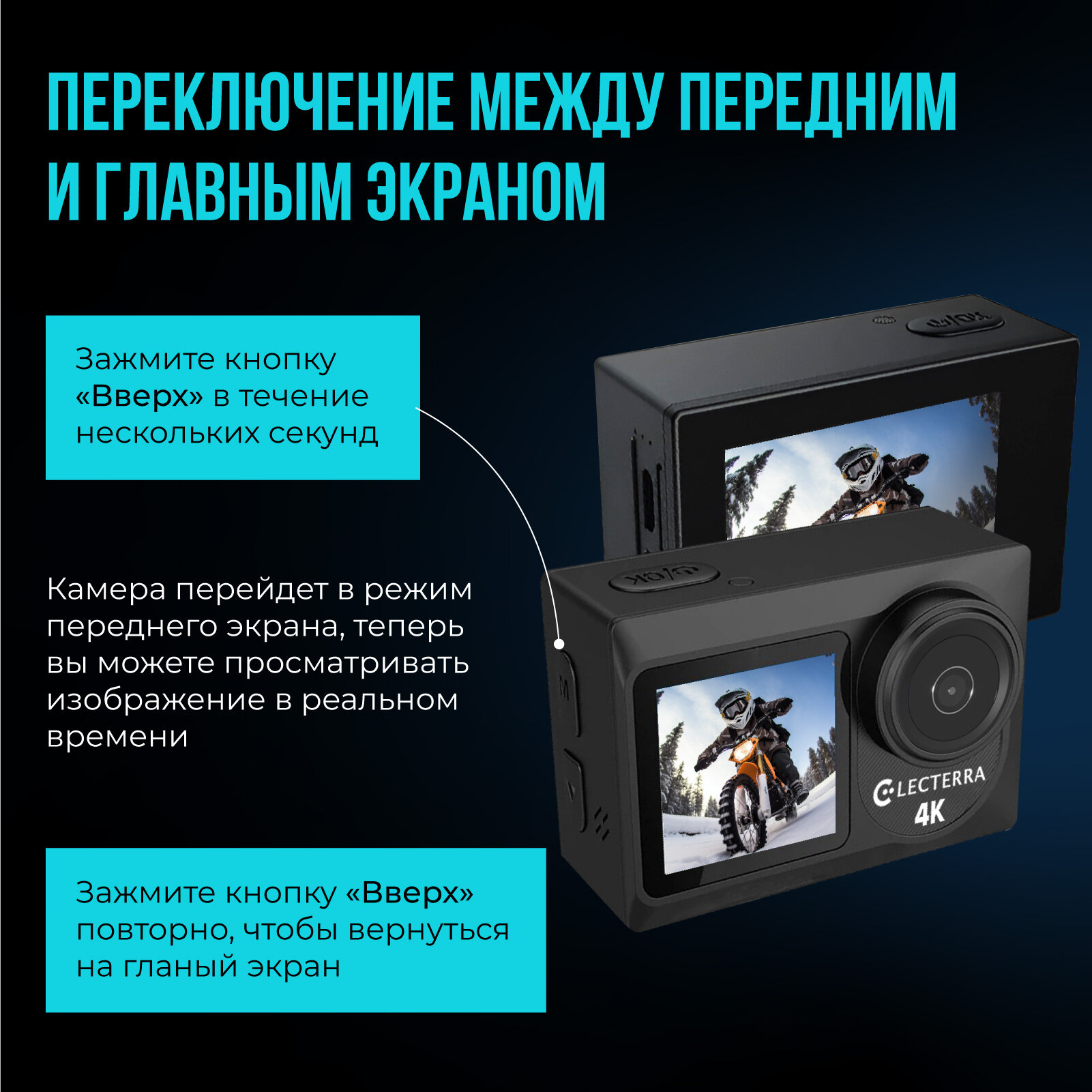 Купить Экшн камера 4К, 2 экрана, водонепроницаемый кейс, крепления