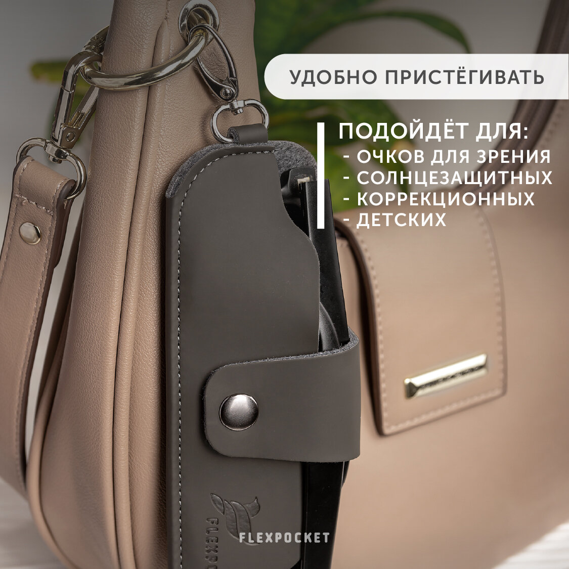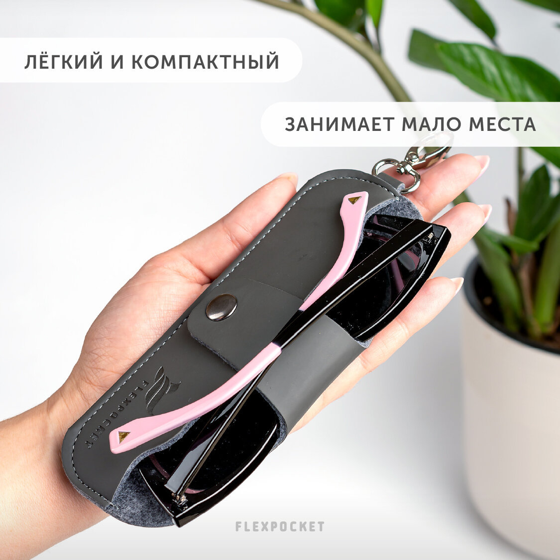 Купить Футляр для очков Flexpocket из экокожи, на кнопке, цвет темно-серый