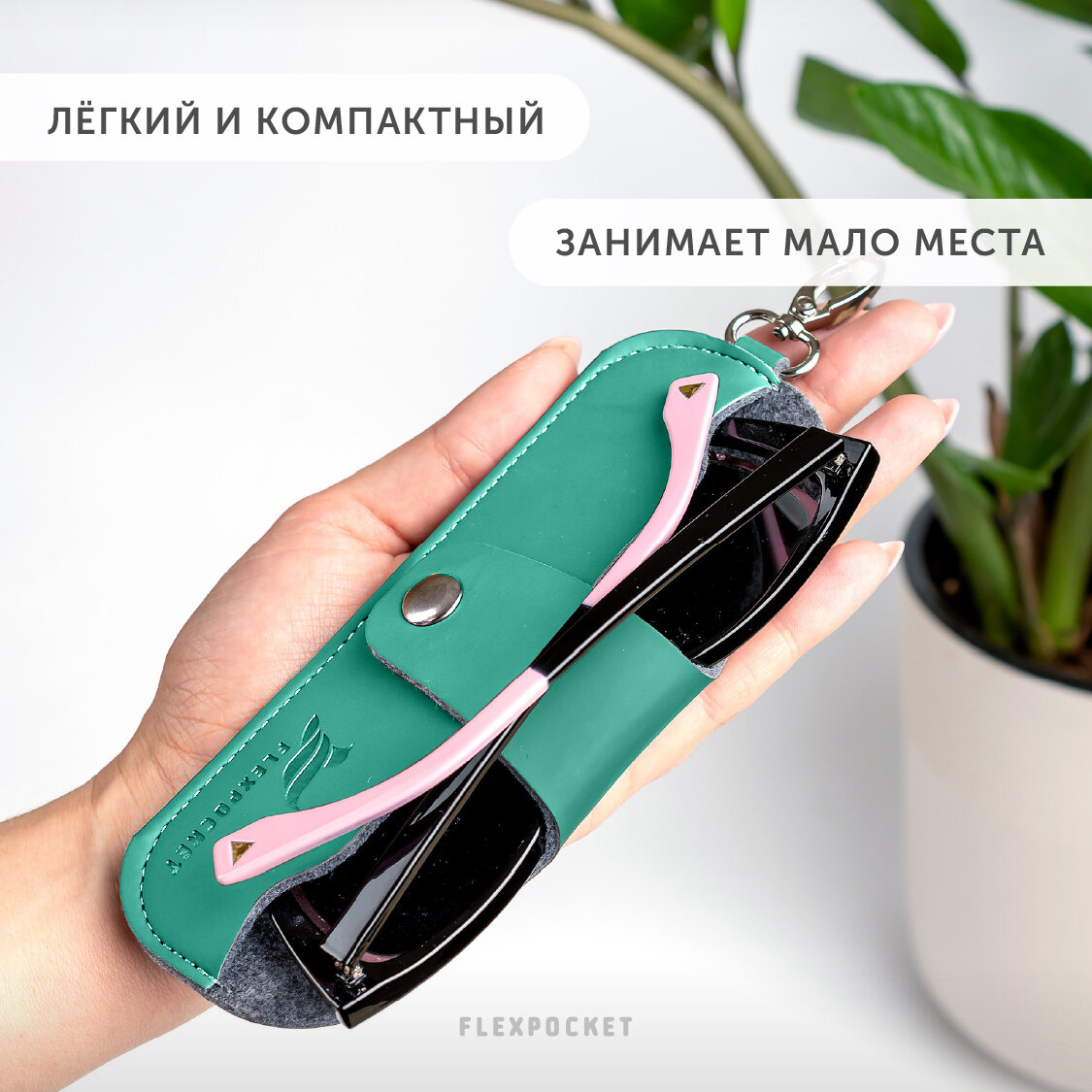 Футляр для очков Flexpocket из экокожи, на кнопке, цвет бирюзовый интересное: