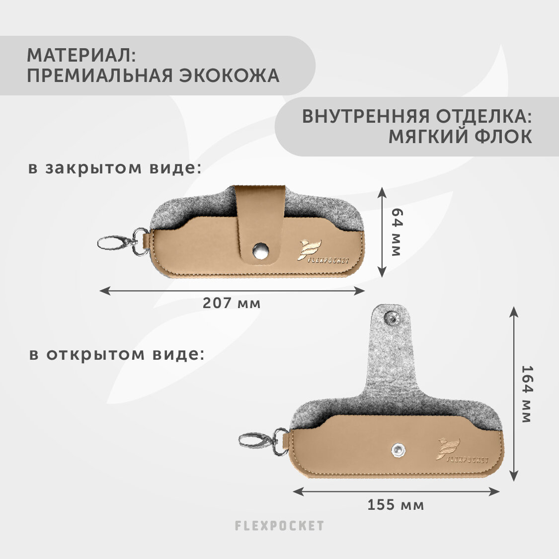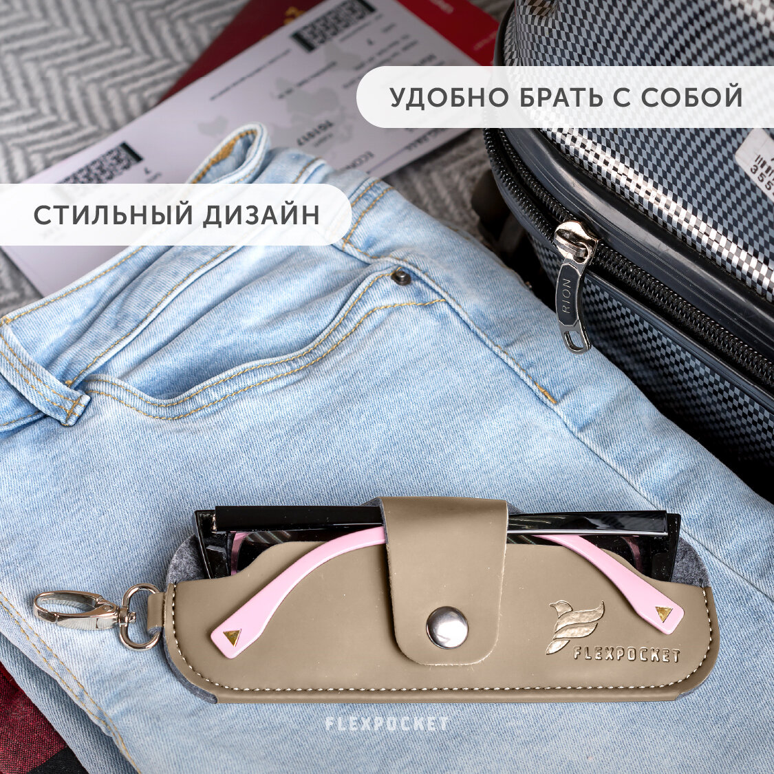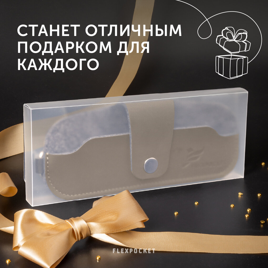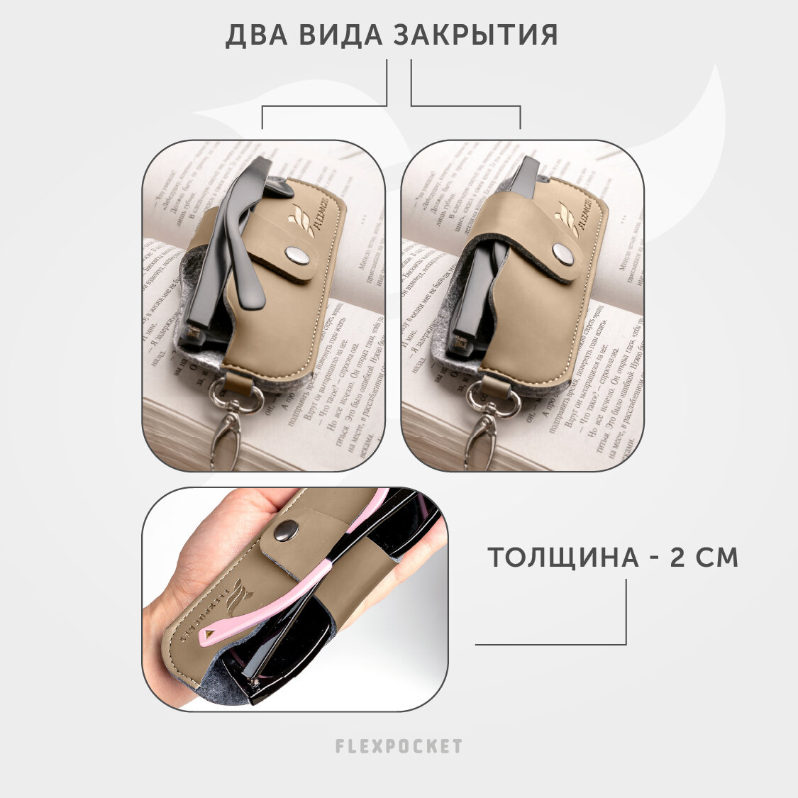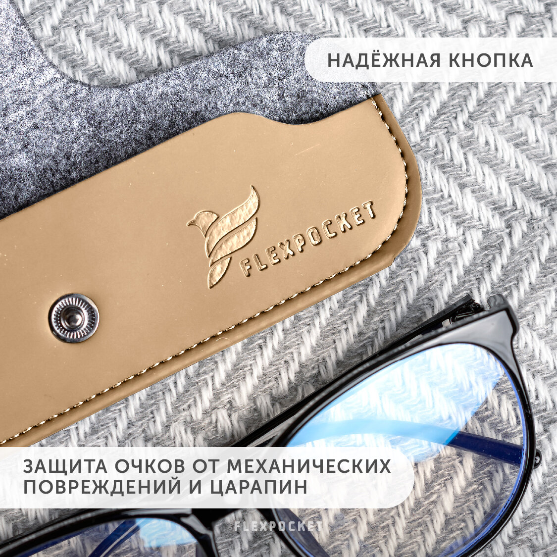 Футляр для очков Flexpocket из экокожи, на кнопке, цвет бежевый интересное:
