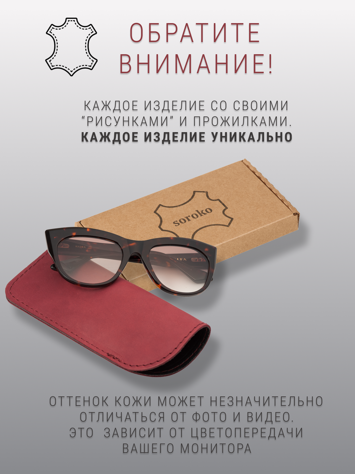 Футляр для очков кожаный чехол, очечник для очков, бордовый интересное: