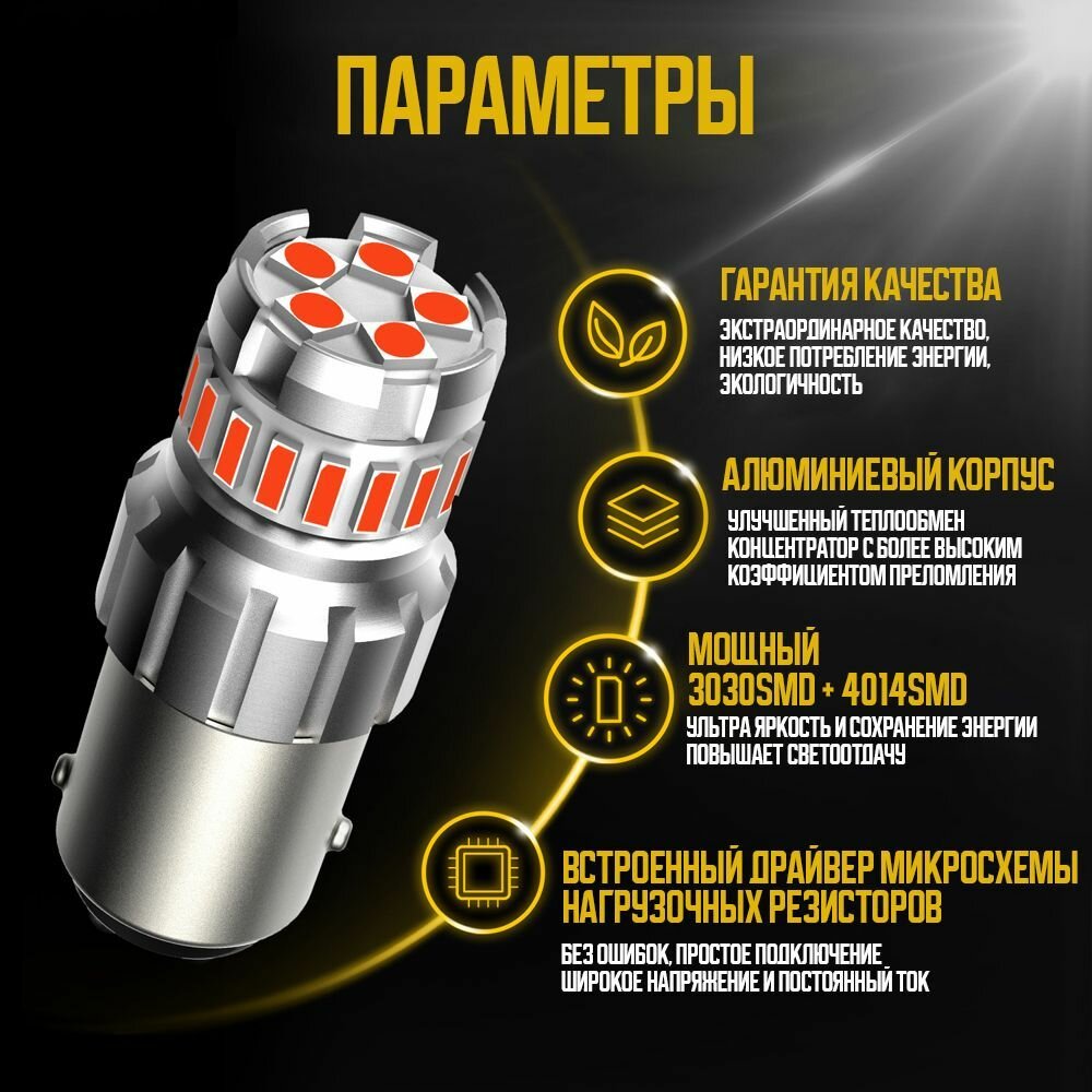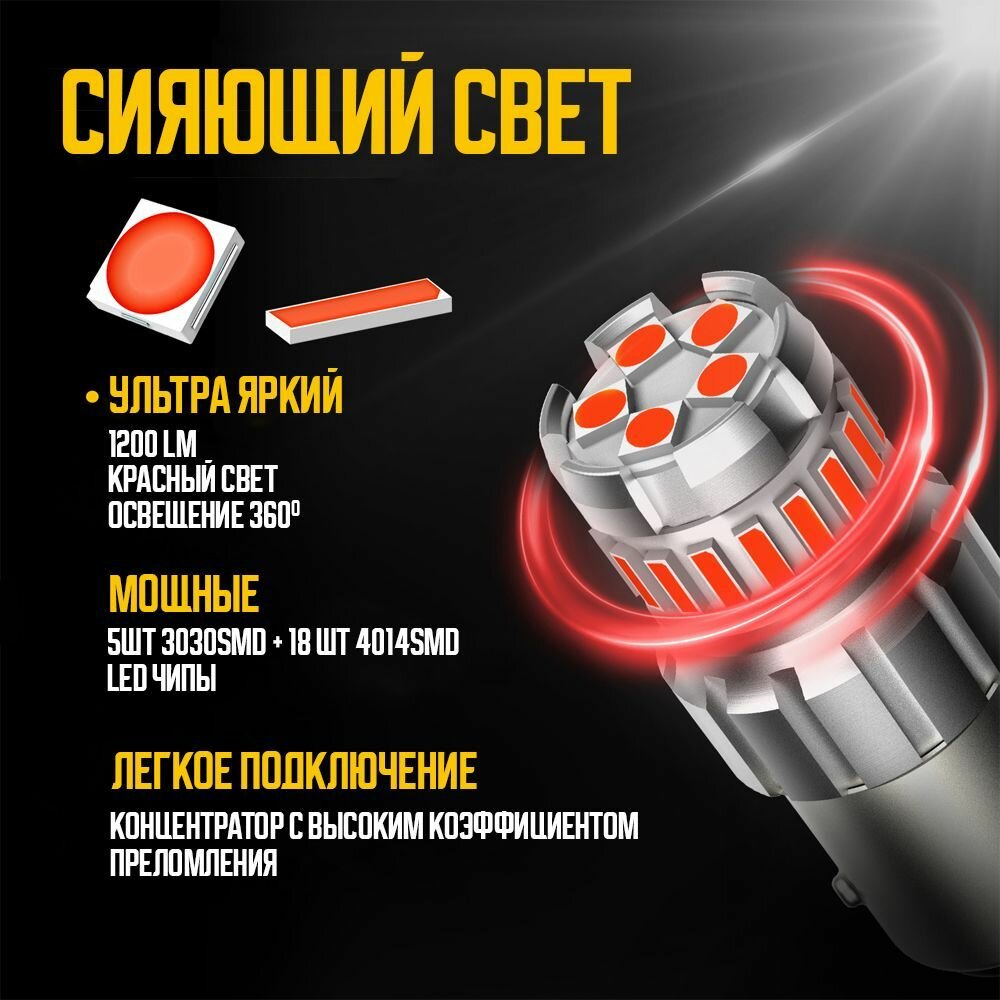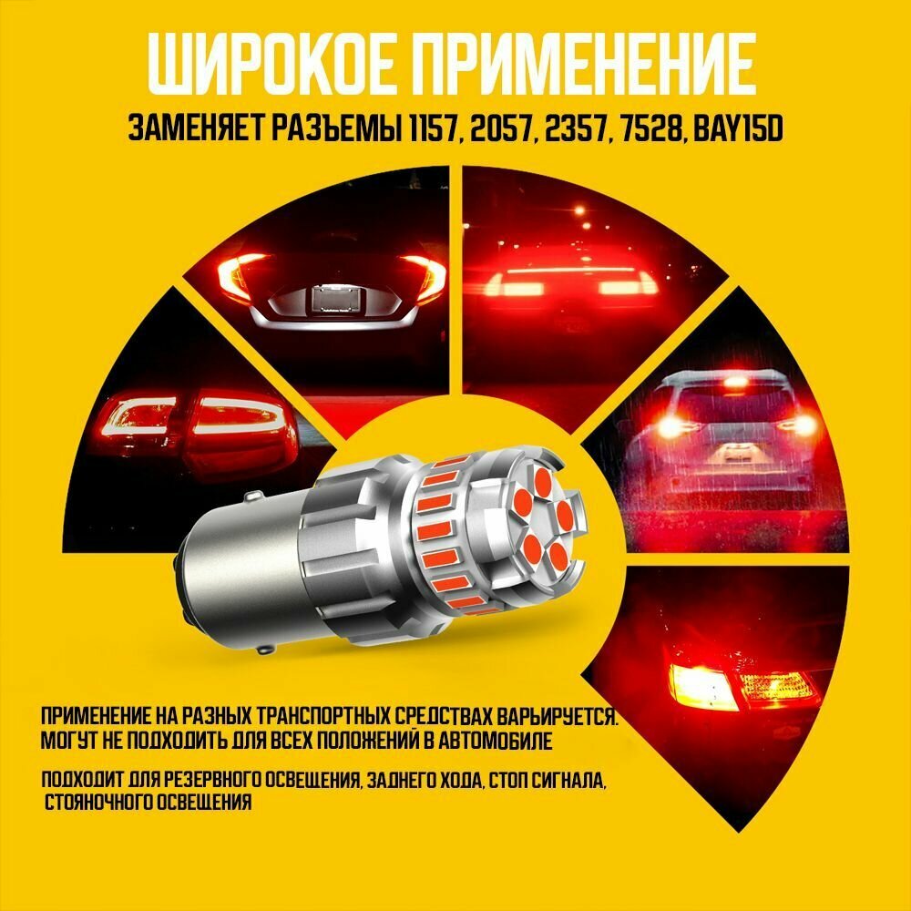 Светодиодная лампа AUXITO 1157 P21/5W цоколь BAY15D 2шт двухконтактная Красный свет габариты стоп сигнал LED автомобильная интересное: