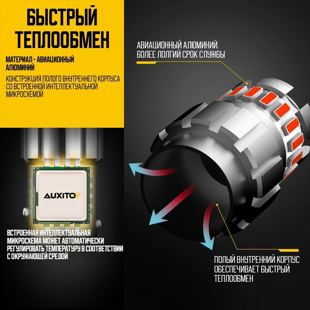Купить Светодиодная лампа AUXITO 1157 P21/5W цоколь BAY15D 2шт двухконтактная Красный свет габариты стоп сигнал LED автомобильная