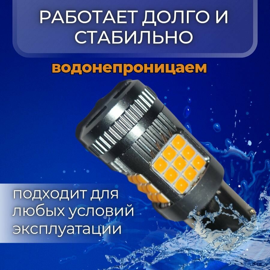 Купить Светодиодная автомобильная лампа в поворотник 2шт. P21W BA15s SMD 3030 30W c обманкой V2 (Оранжевые)