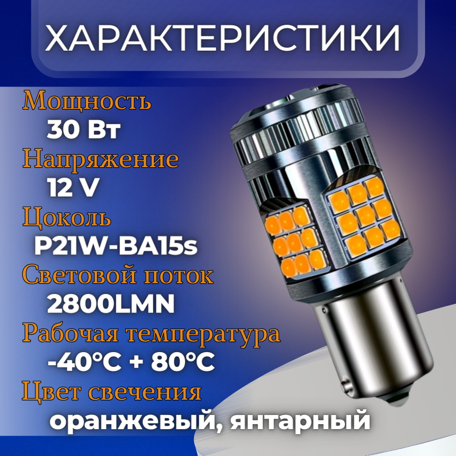 СохранитьСветодиодная автомобильная лампа в поворотник 2шт. P21W BA15s SMD 3030 30W c обманкой V2 (Оранжевые) интересное:
