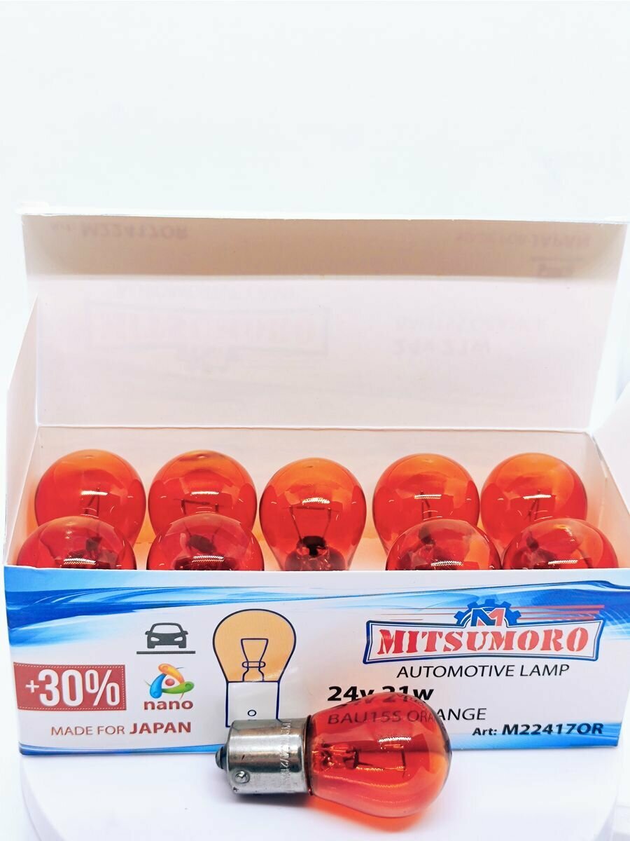 Купить Лампы-галоген-автомобильные-Mitsumoro-в-поворотник-PY21W-Bau15s-24V-10шт