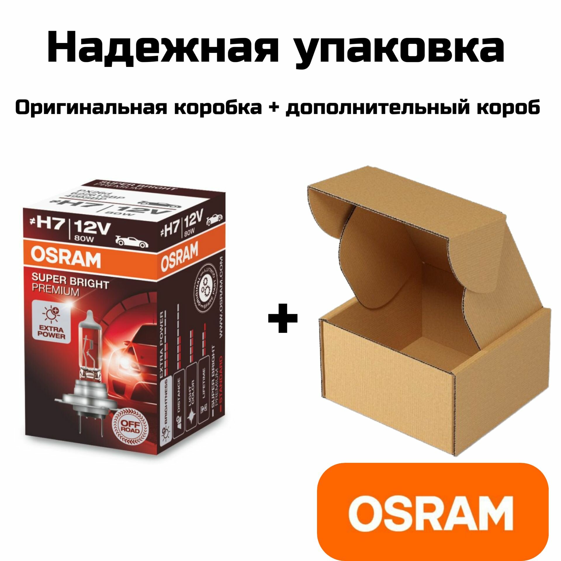 Лампы автомобильные галогенные H7 OSRAM SUPER BRIGHT PREMIUM 12V 80W, 62261SBP 2 шт. интересное:
