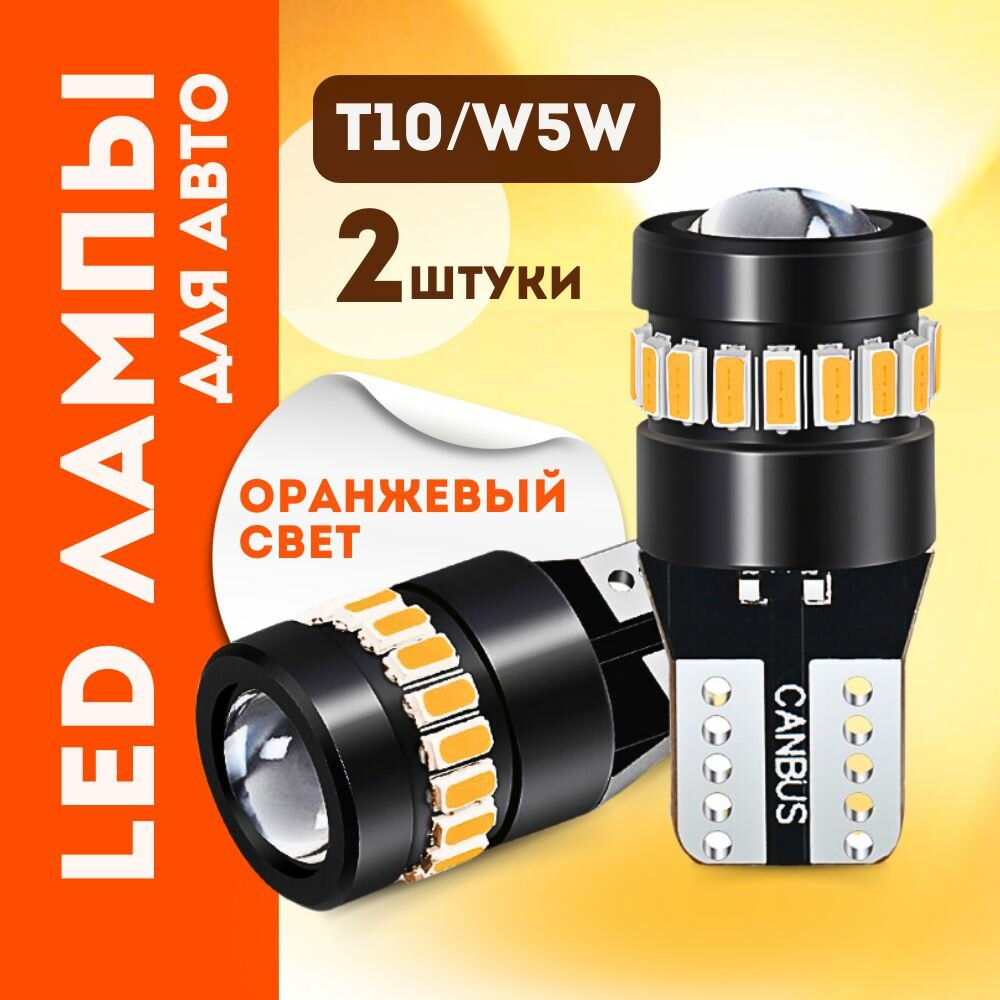 Купить Габаритные лампочки светодиодные W5W, 2 шт, оранжевый (желтый) свет / в габариты, дхо, приборную панель, номера