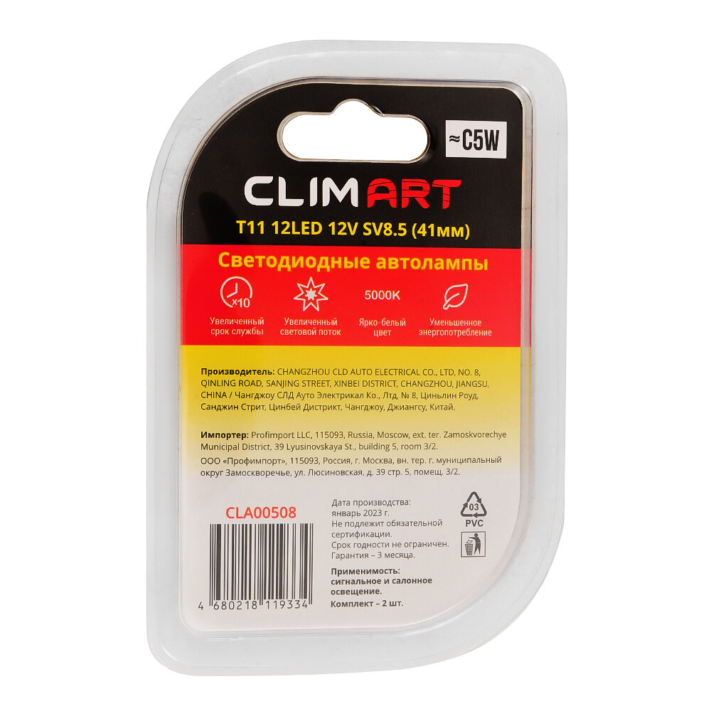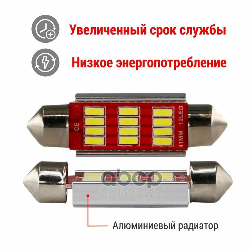 Лампа светодиодная CLIM ART 12V C5W 2.4W 2 шт CLA00508 интересное: