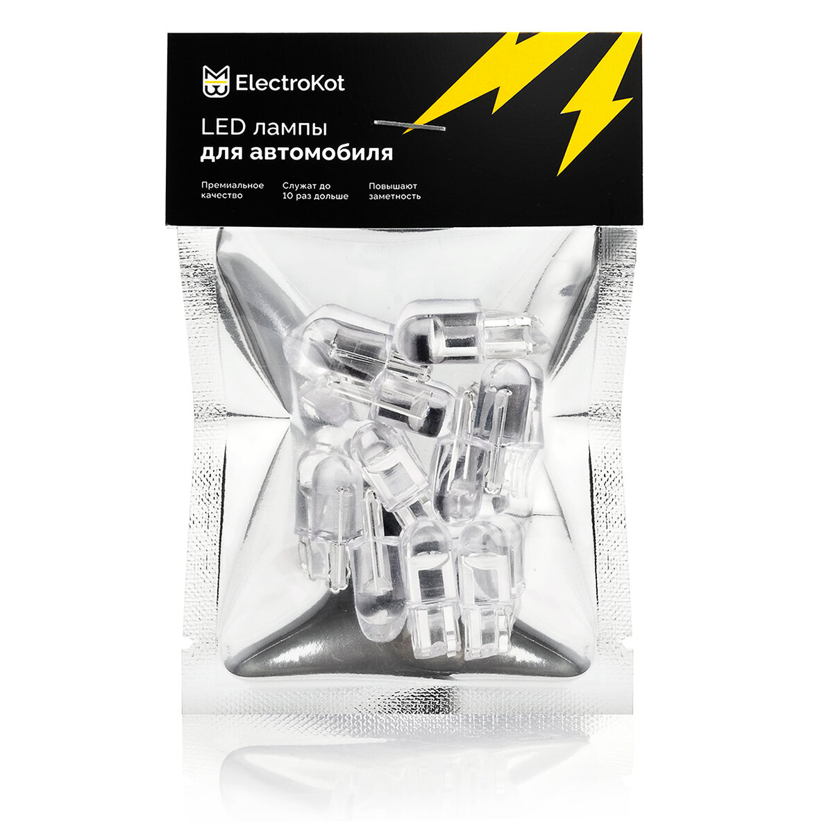 Светодиодная лампа для авто ElectroKot Crystal T10 W5W 5000K белый свет 10 шт интересное: