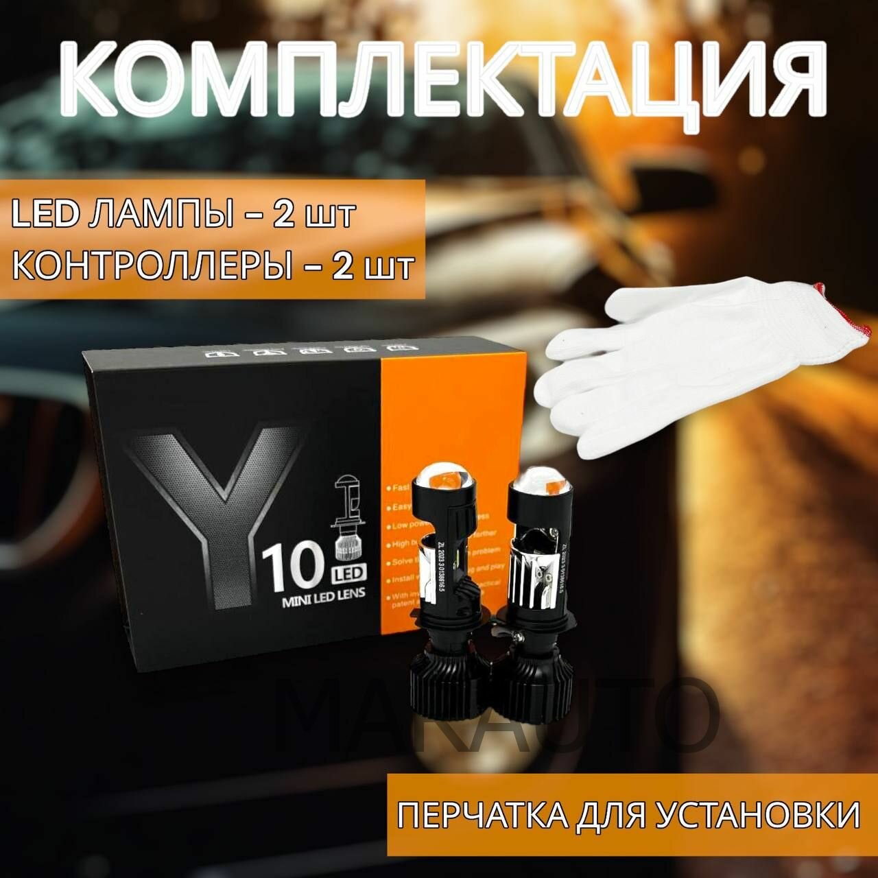 Светодиодные лампы H7, LED мини линзы H7 Y10 Pro, белые 6000k, 8000lm, LED линзы, без разбора фары, 2 шт комплект интересное:
