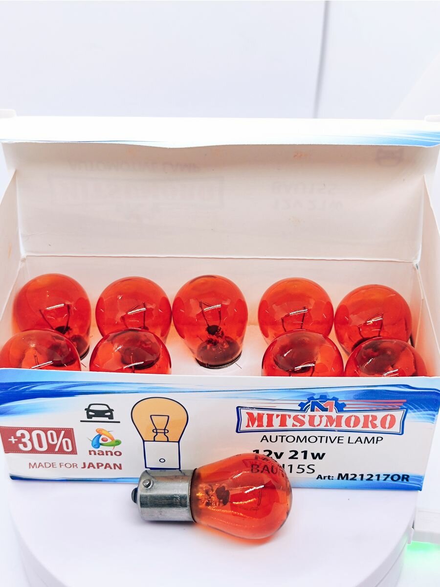 Лампы-галогенные-автомобильные-Mitsumoro-Желтые-PY21W-Bau15s-12V-10шт интересное: