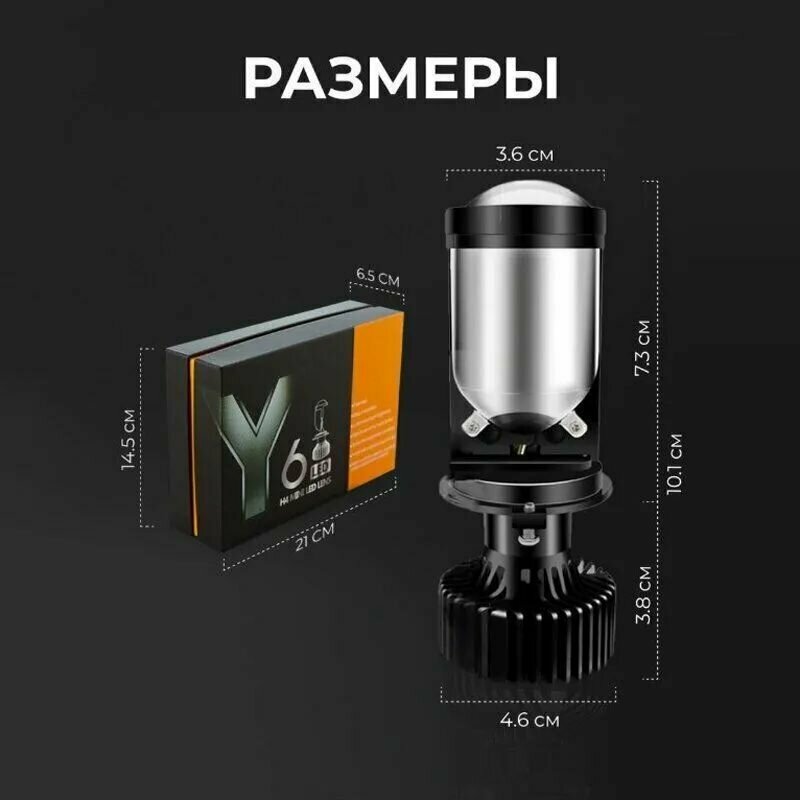 Лампа LED автомобильная с линзой ПО ГОСТУ, модель Y6 (обновленная Y9) светодиодная H4, CANBUS, комплект 2шт. интересное:
