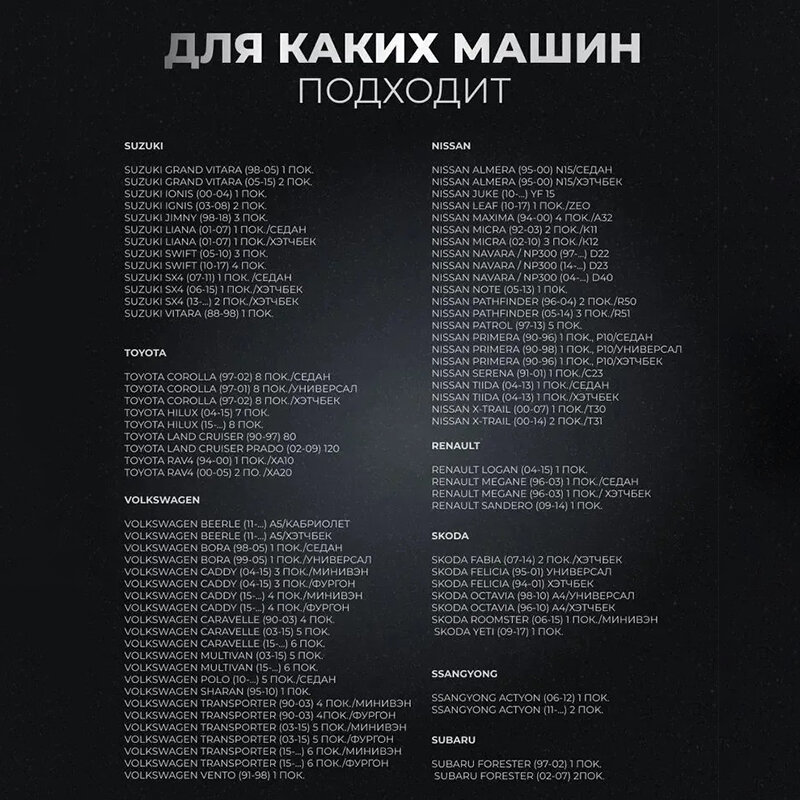 | Тип автотехники | легковые автомобили |