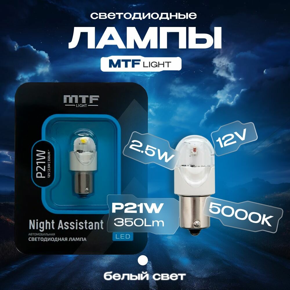 Лампа светодиодная MTFLIGHT NIGHT ASSISTANT 12V P21W 2.5W NP21WW