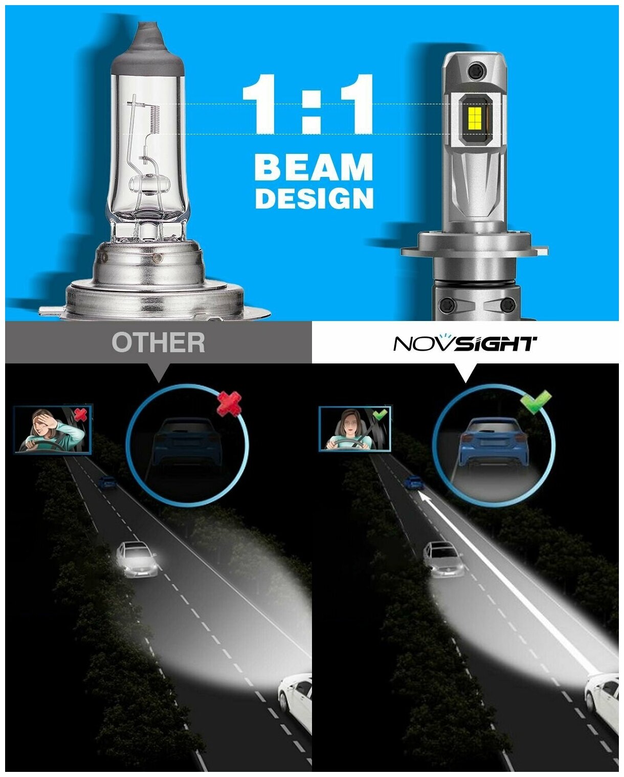 Светодиодная лампа Novsight N62 H7 цоколь PX26d 100Вт 2шт 6500К 22000Лм белый свет LED автомобильная интересное: