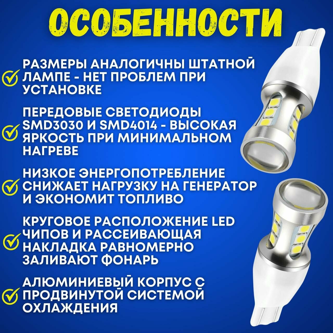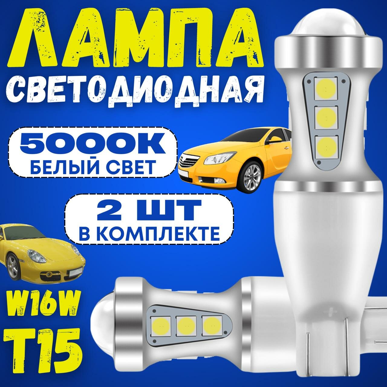 Светодиодные лампы в габариты авто T15 w16w, фонарь, автосвет, led лампы RoundLight 5000К, 2шт. интересное: