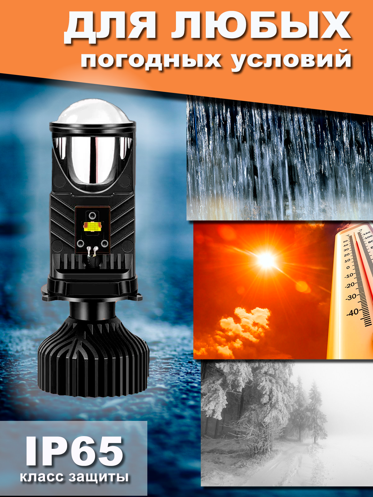 Автомобильные светодиодные LED лампы H4 с линзой, Y6, 5500 К, для дальнего и ближнего света, комплект 2 шт. интересное: