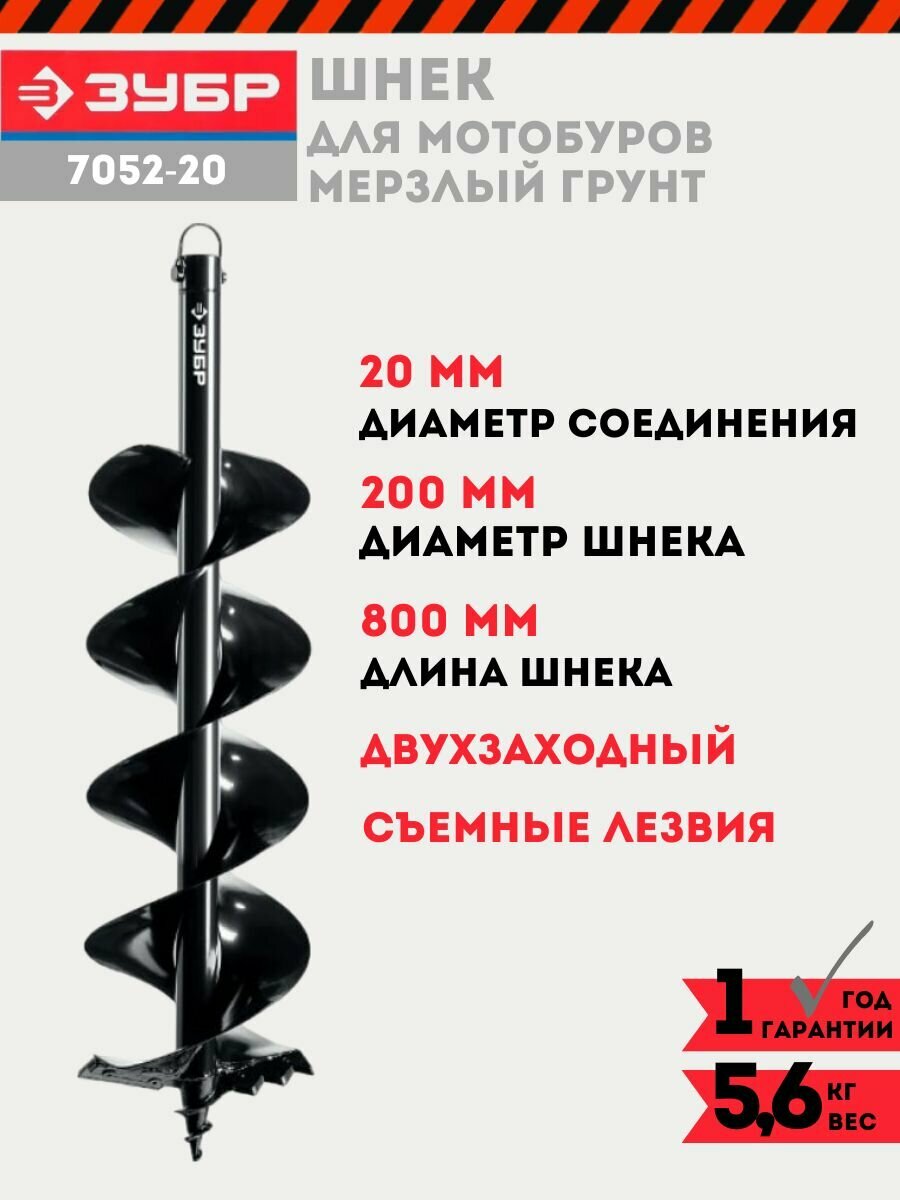 Зубр Шнек для мотобуров мерзлый грунт d=200 мм двухзаходный Зубр 7052-20 интересное: