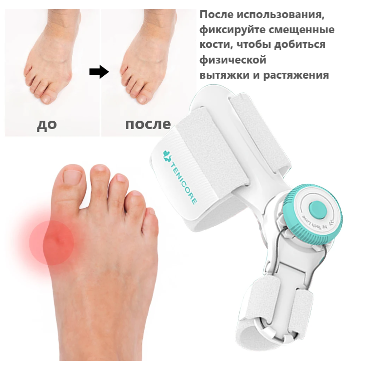 Универсальный корректор Tenicore с регулировкой угла отведения большого пальца ноги при вальгусной деформации интересное: