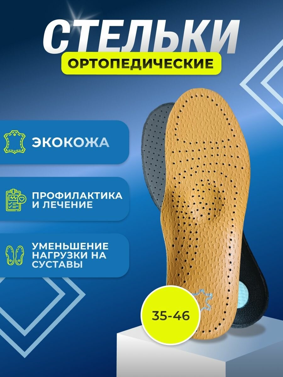Стельки ортопедические кожаные для обуви каркасные с супинатором при плоскостопии, размер 35-36