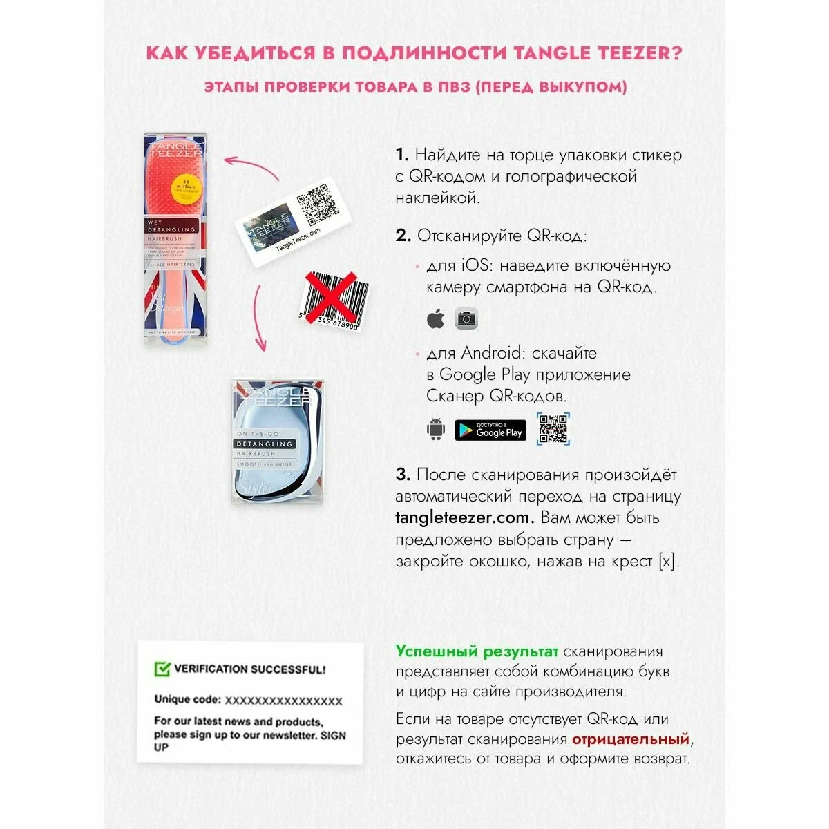 | Отзыв: | QR код на официальный сайт Tangle Teezer подтверждает оригинальность! |