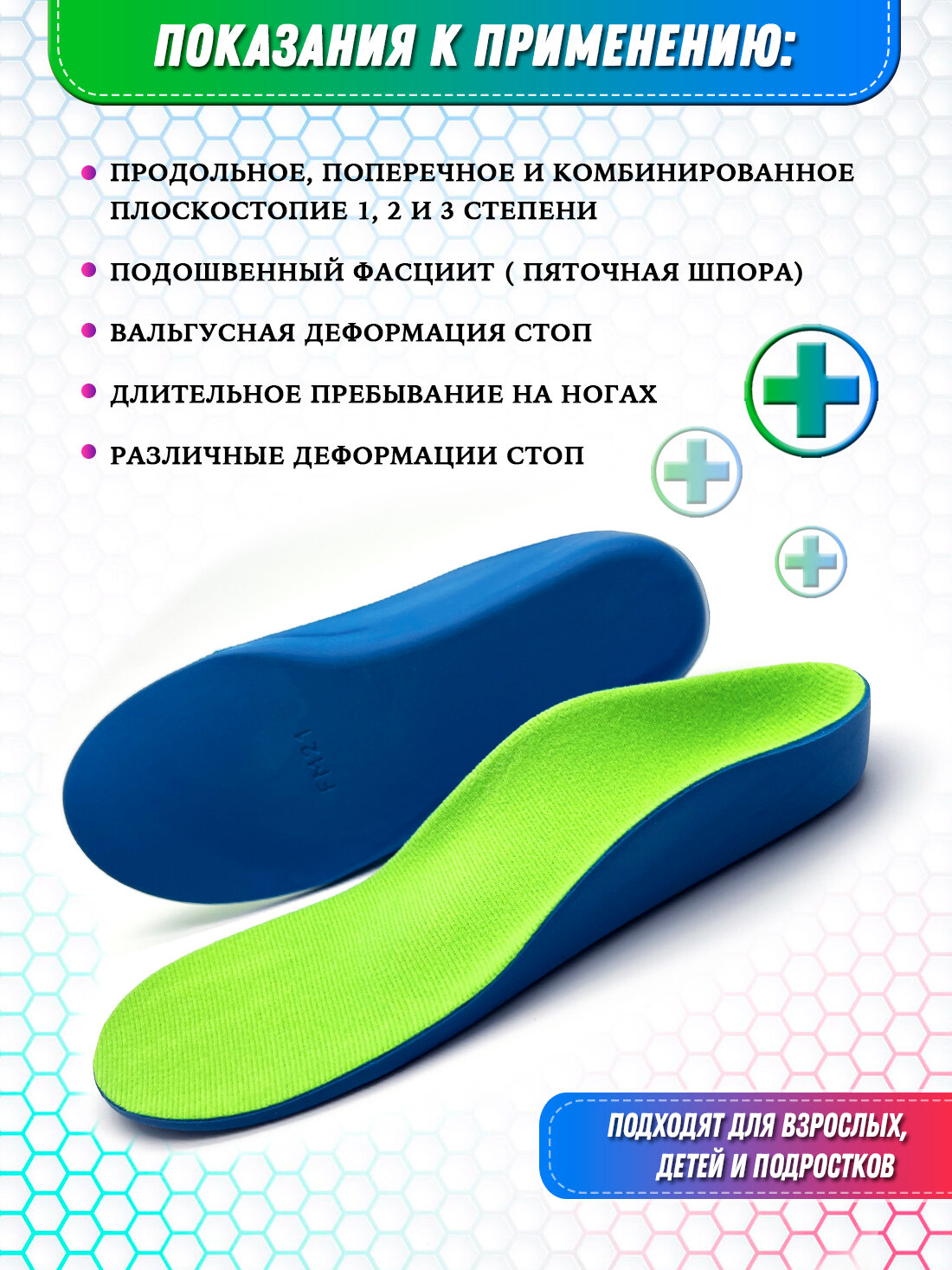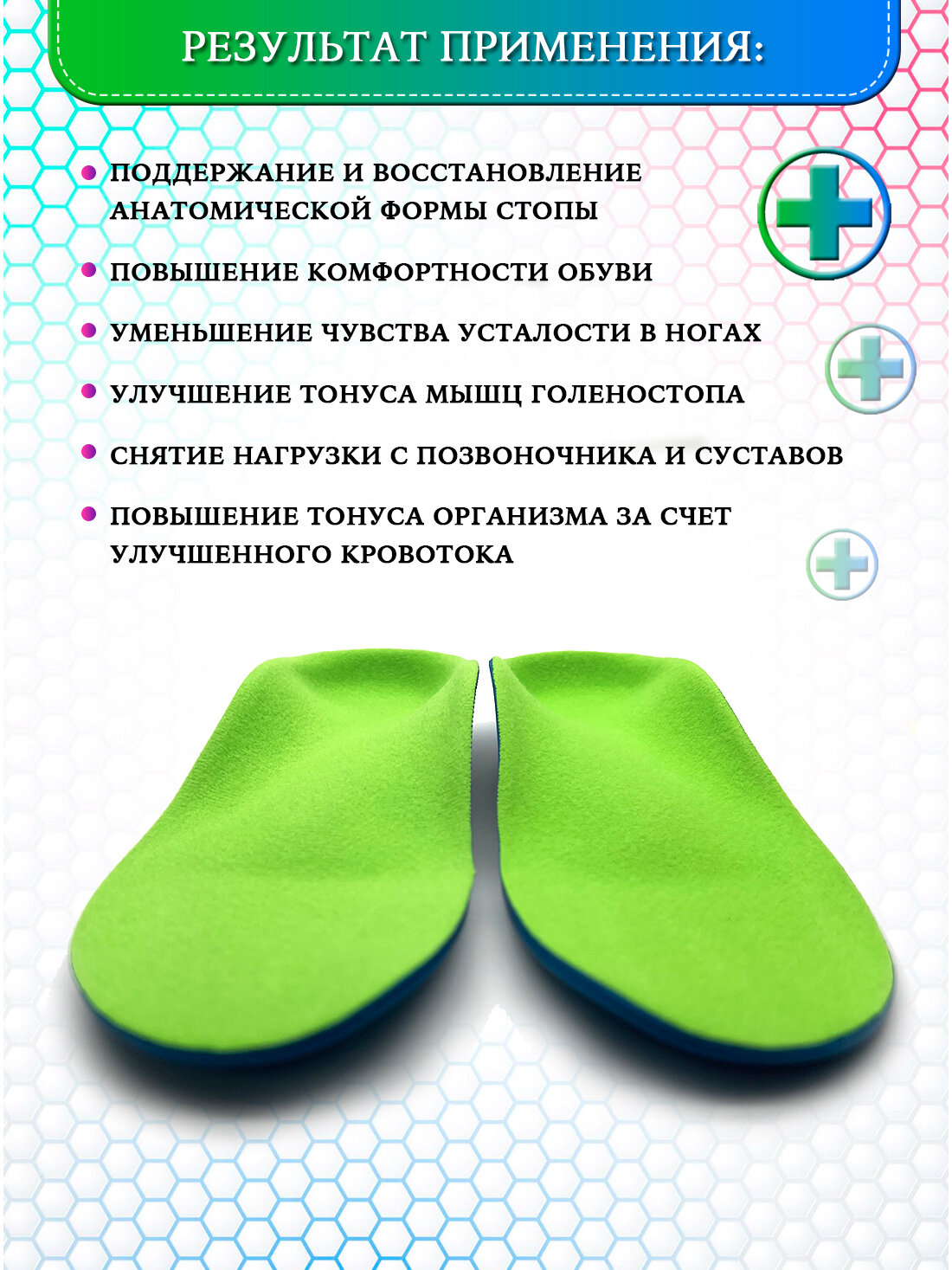 | Показания | артрит/артроз / вальгусная деформация / варусная деформация / искривление позвоночника / натоптыши / повышенная нагрузка на ноги / поперечное плоскостопие / продольно-поперечное плоскостопие / продольное плоскостопие / пяточная шпора |