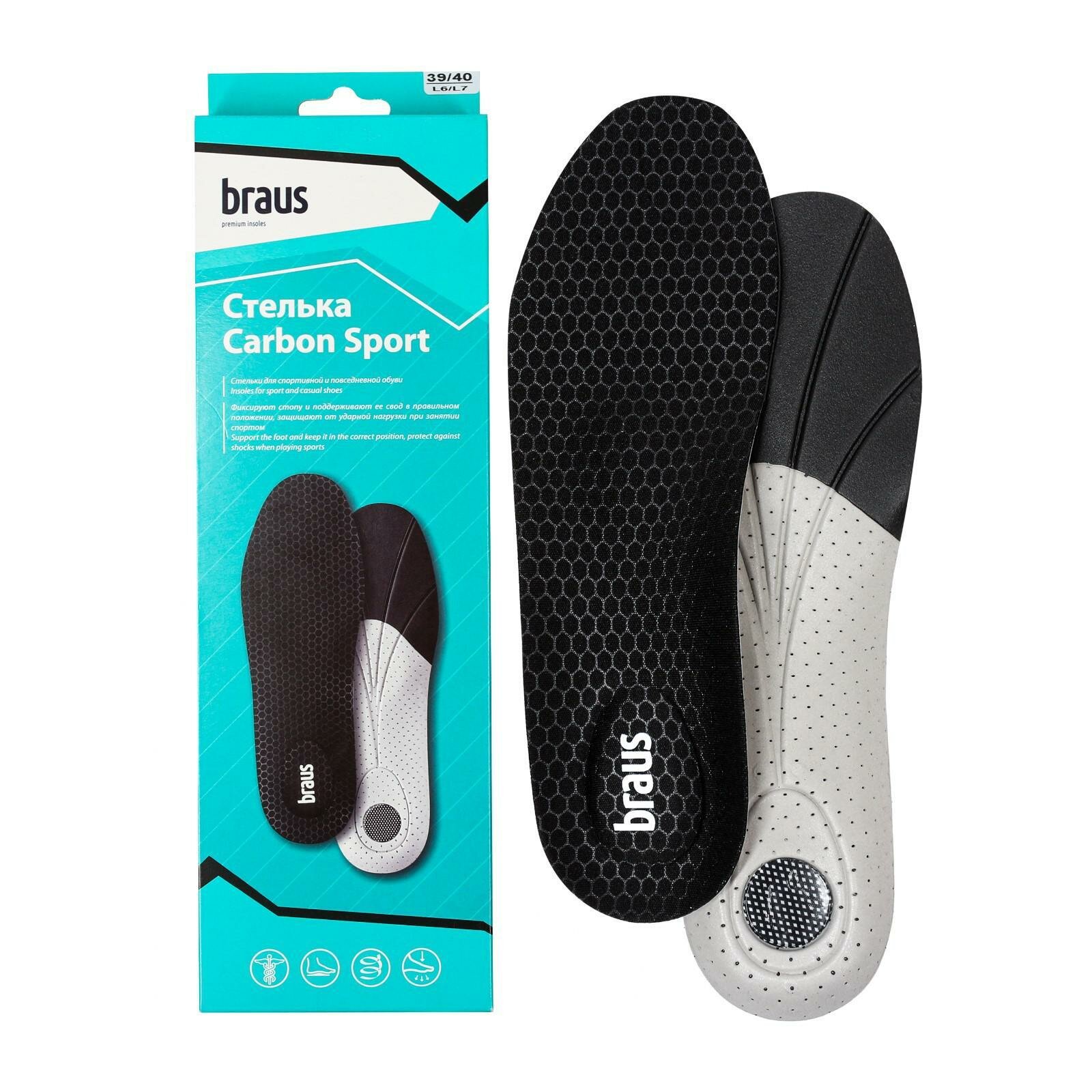 Стельки для спортивной и повседневной обуви Braus Carbon Sport. Размер 39/40