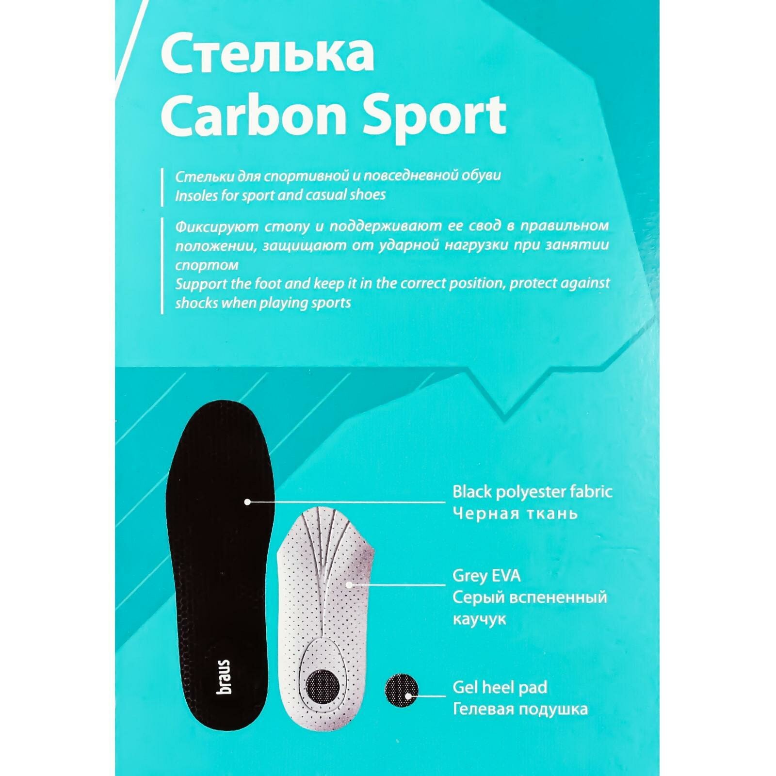 Купить Стельки для спортивной и повседневной обуви Braus Carbon Sport. Размер 41/42