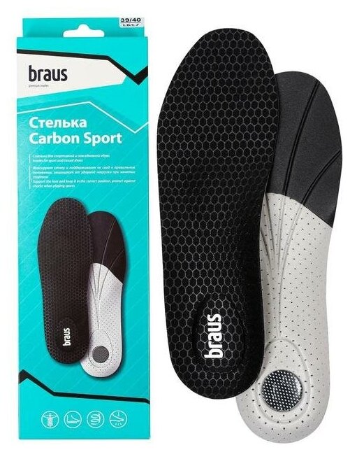 Стельки для спортивной и повседневной обуви Braus Carbon Sport. Размер 39/40