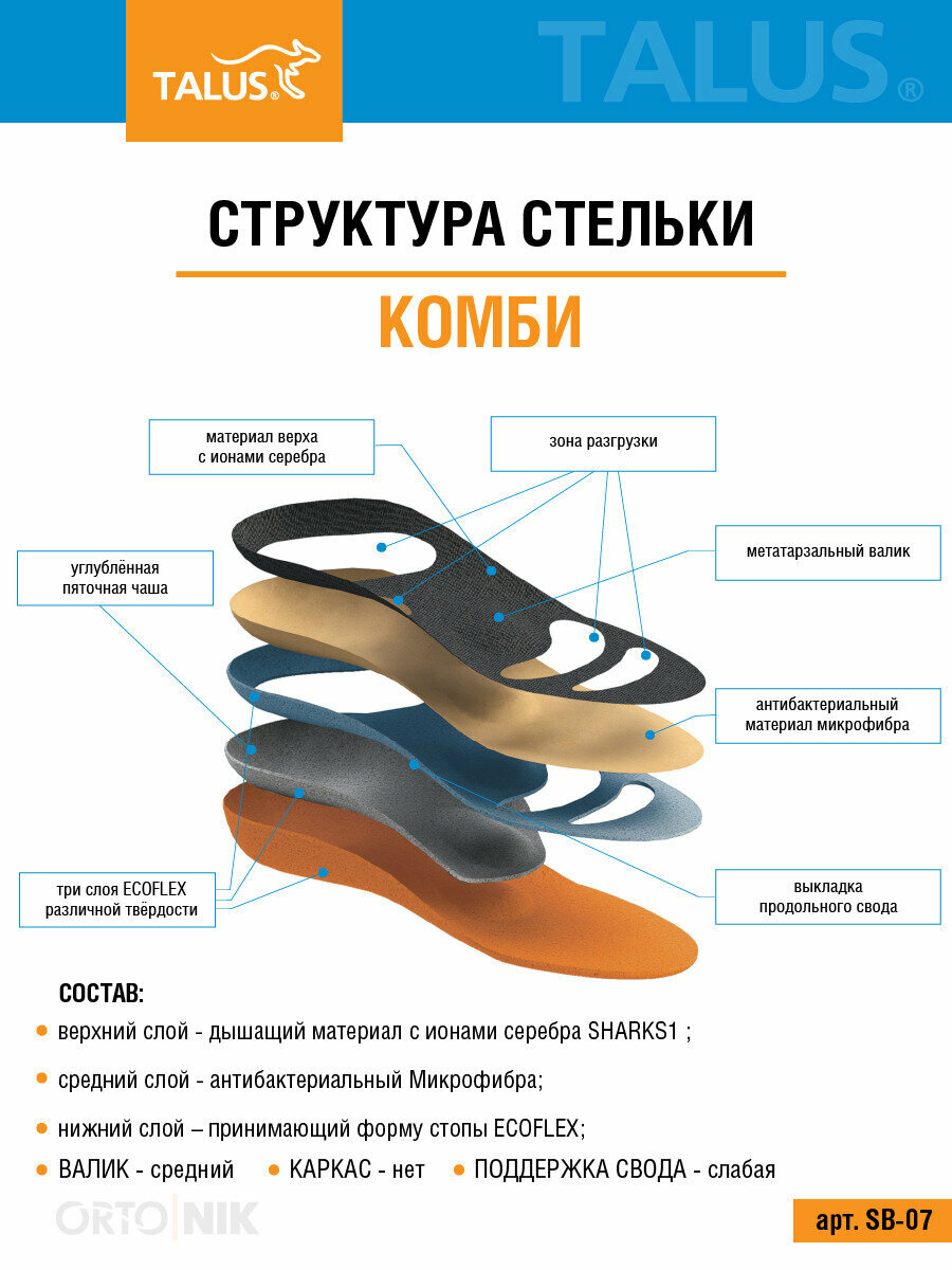 Ортопедические стельки Talus Комби SB 07 (Размер:41-42)