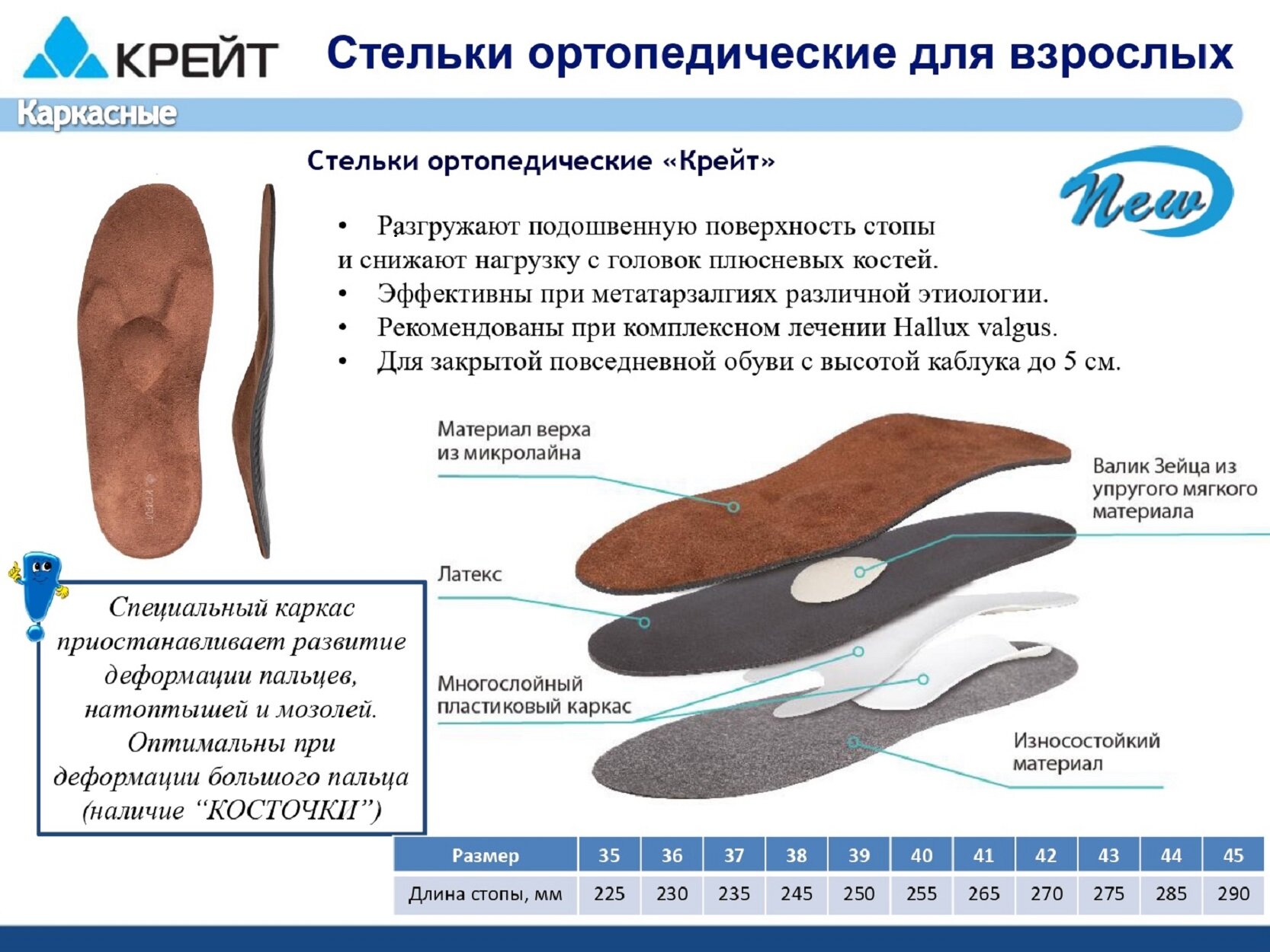 | Показания | вальгусная деформация / натоптыши / повышенная нагрузка на ноги / поперечное плоскостопие / продольно-поперечное плоскостопие / продольное плоскостопие |