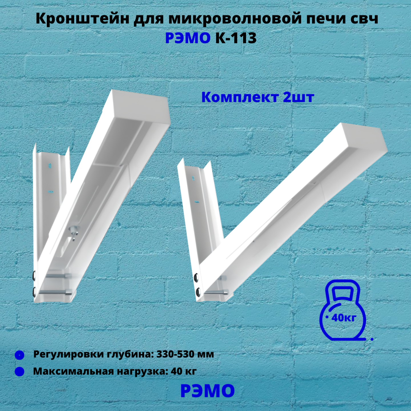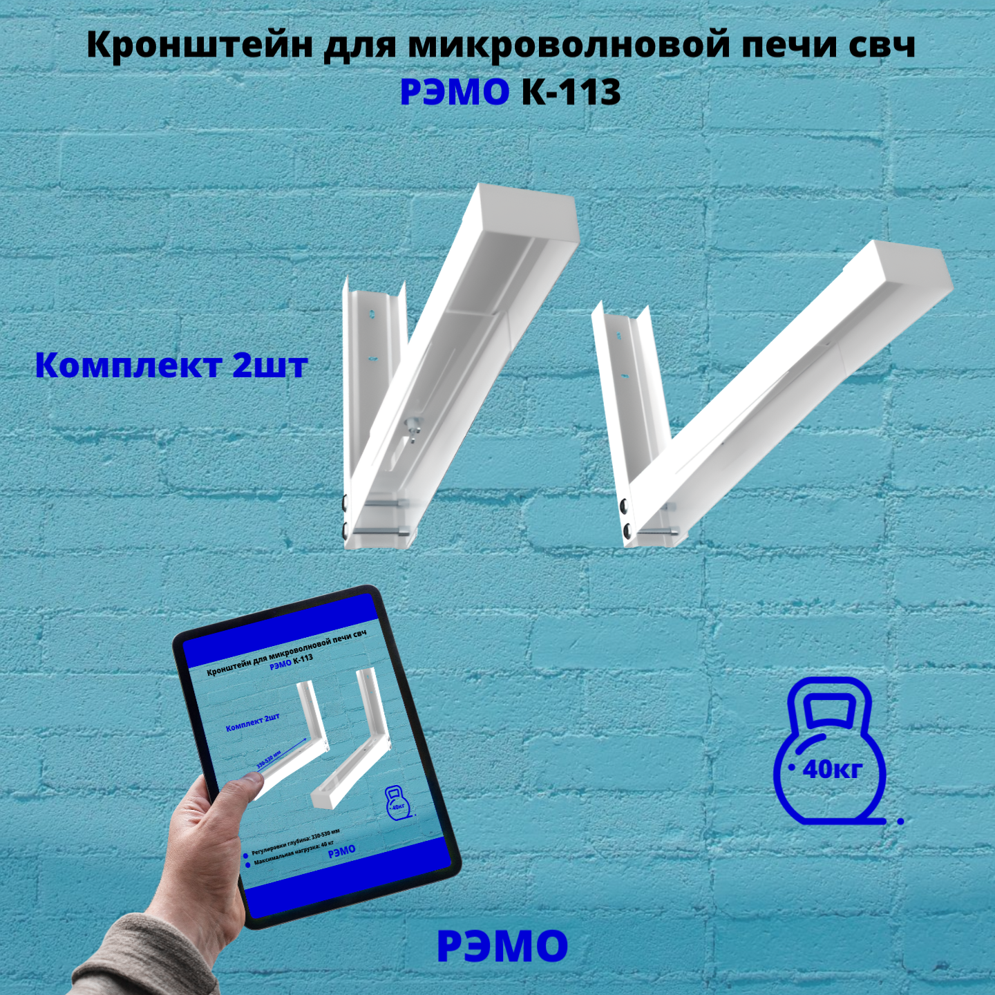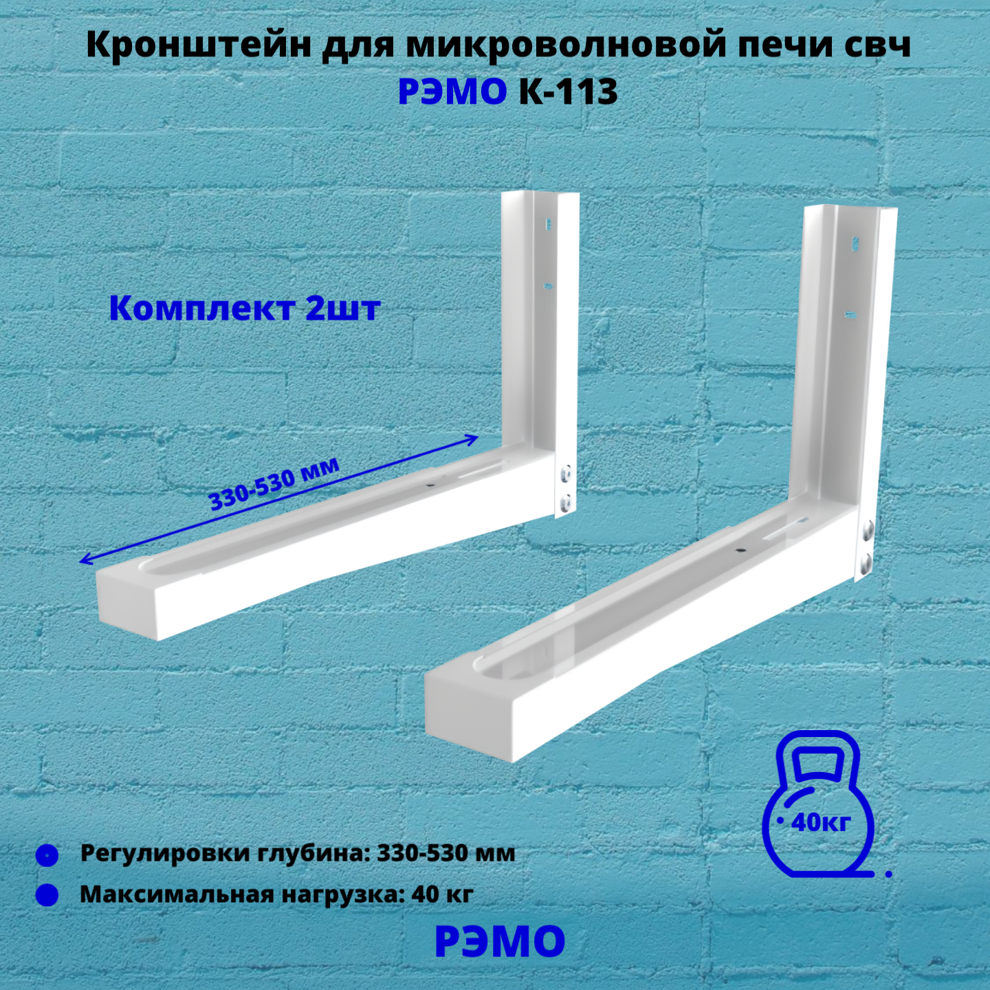 СохранитьСборный кронштейн К113 РЭМО для микроволновки/СВЧ, духового шкафа , стальной, цвет белый, максимальный вес до 40 кг интересное: