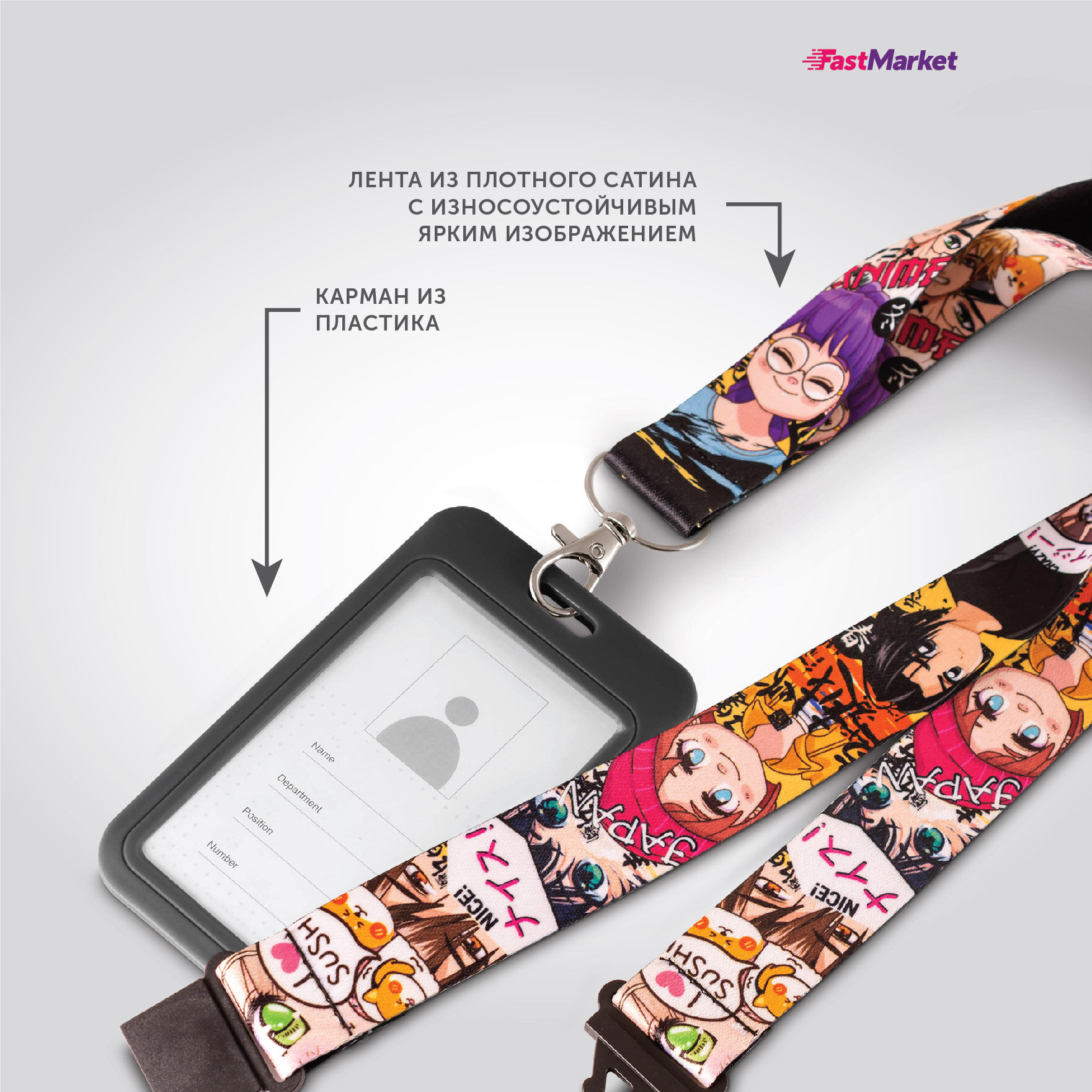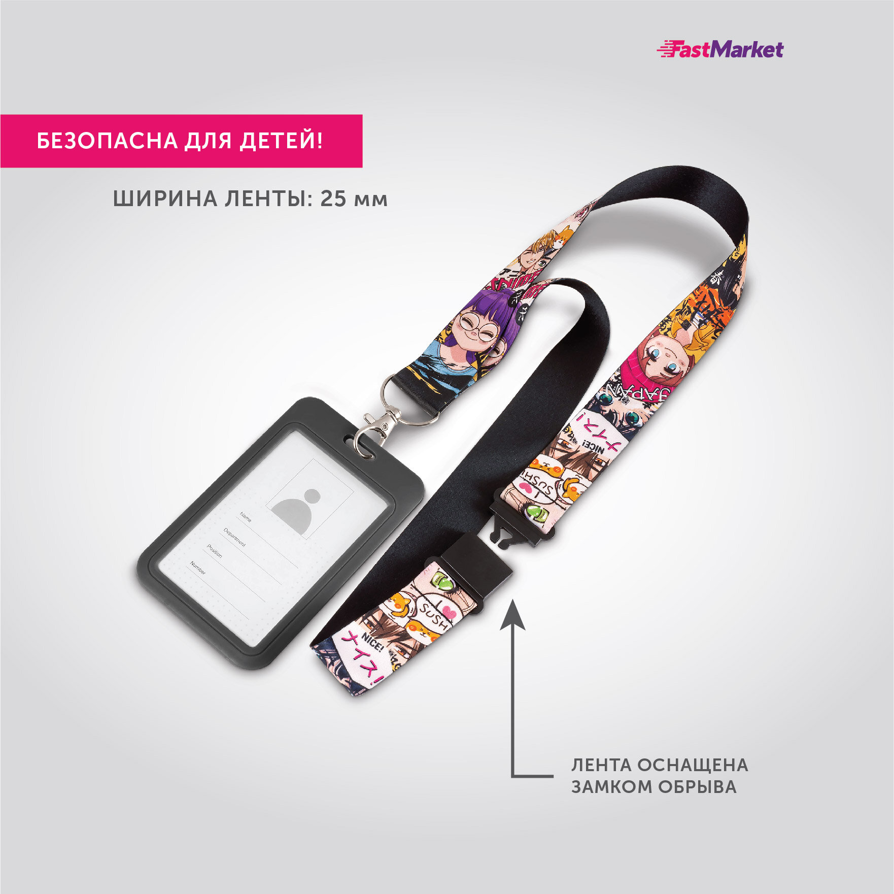 Купить Бейджик для школьника с карабином Fastmarket, лента с карманом для пропуска, цвет черный