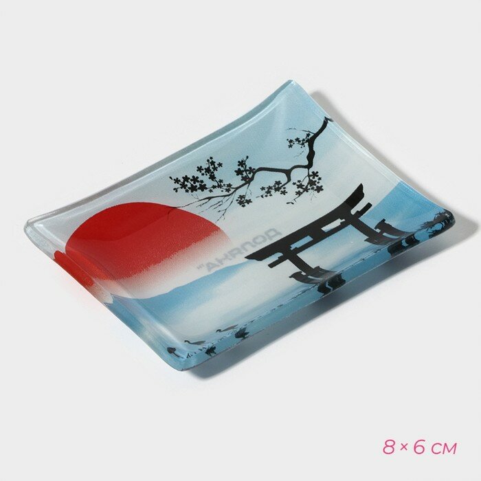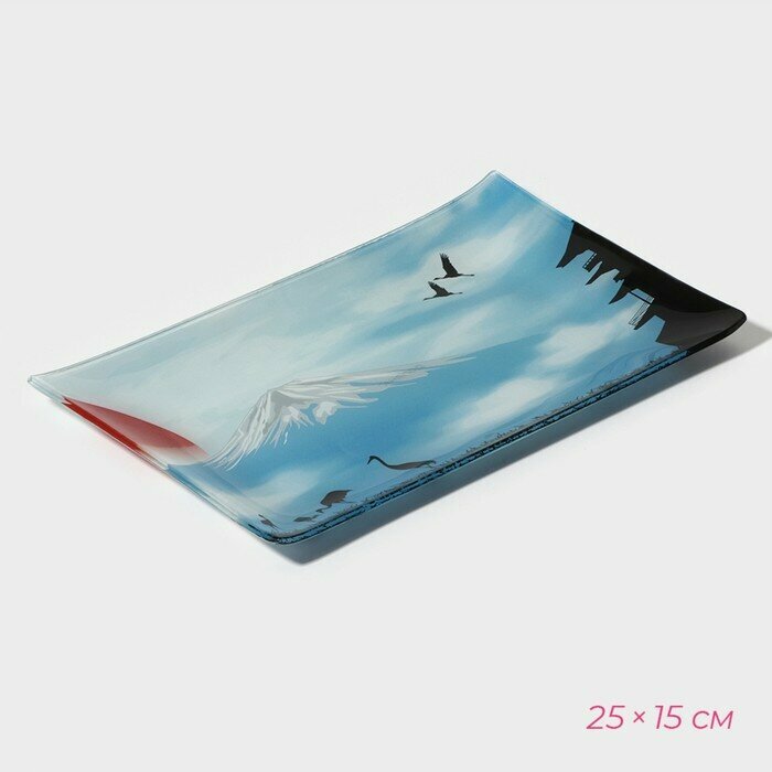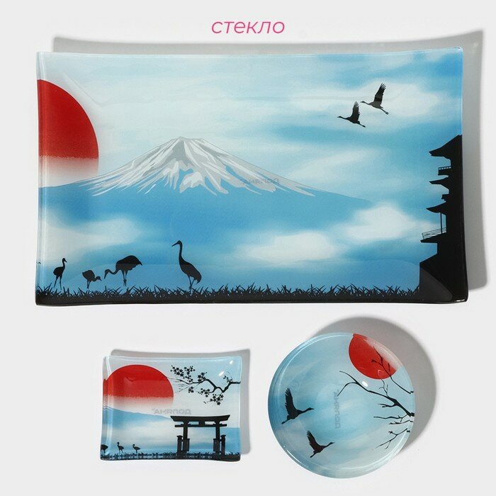 Купить Доляна Набор для суши из стекла Доляна «Журавль», 3 предмета: соусники 8×2 см, 8×6 см, подставка 25×15×2 см