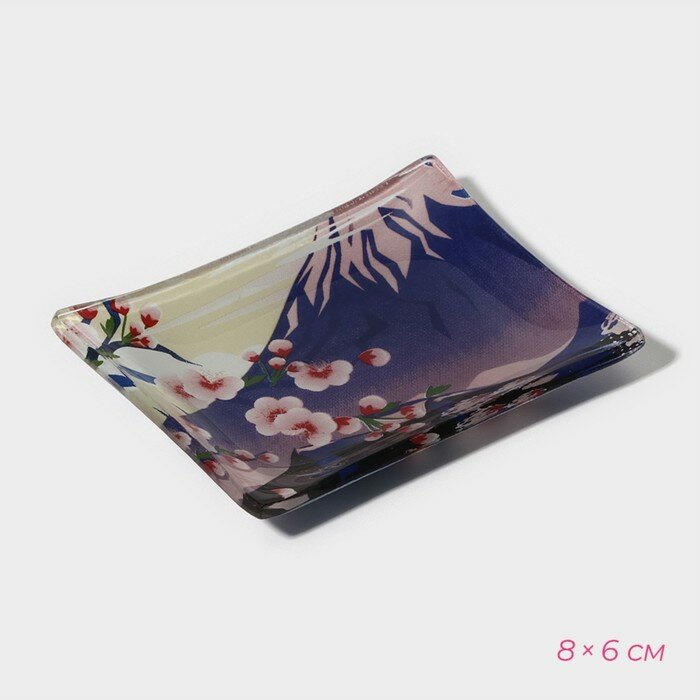 Купить Набор для суши из стекла Доляна «Фудзияма», 3 предмета: соусники 8×2 см, 8×6 см, подставка 25×15×2 см