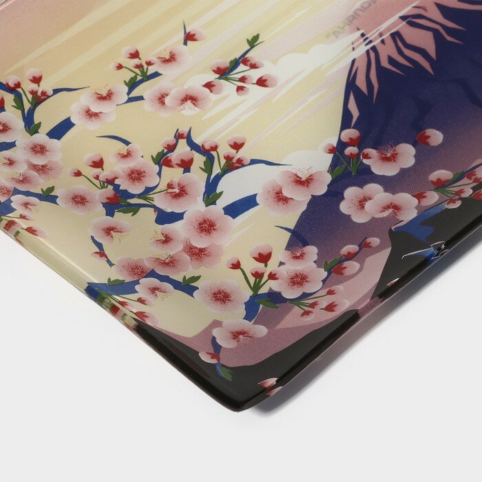 Набор для суши из стекла Доляна «Рассвет в горах», 3 предмета: соусники 8×2 см, 8×6 см, подставка 25×15×2 см