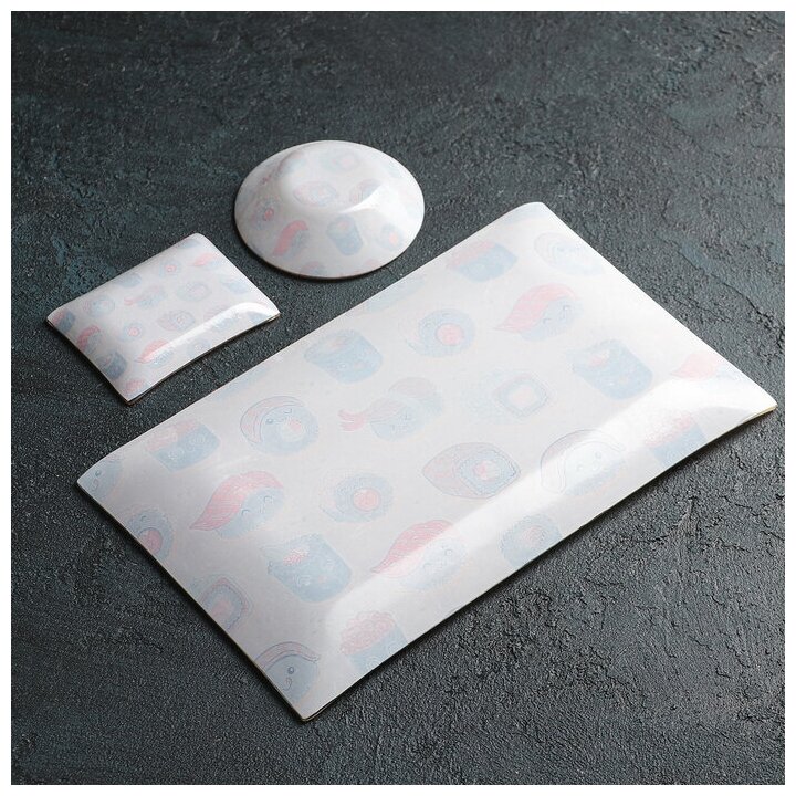 Набор для суши Доляна "Абстракция", 3 предмета: соусники 8*2 см, 8*6 см, подставка 25*15 см