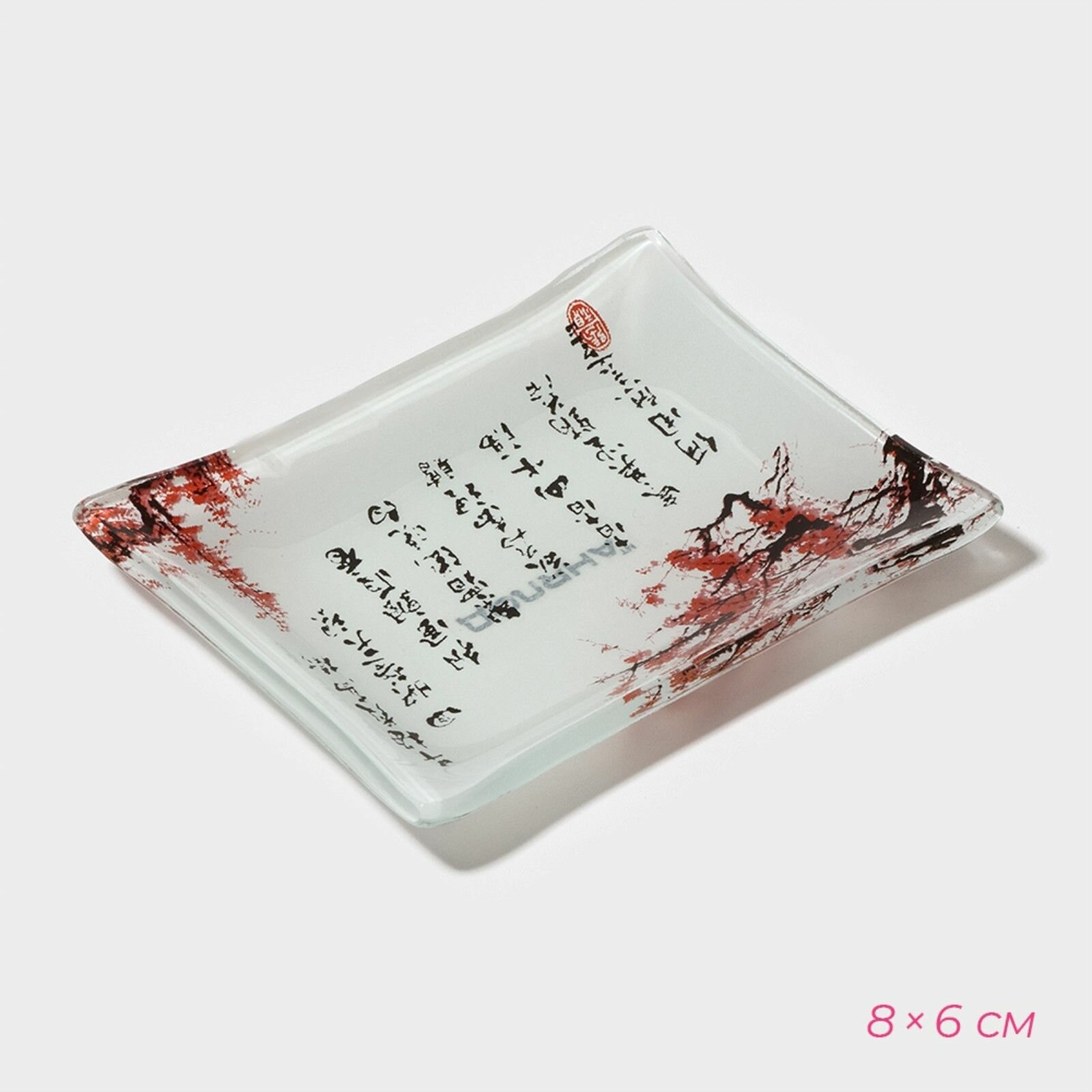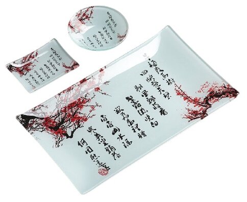 Купить Набор для суши из стекла Доляна «Сакура», 3 предмета: соусники 8×2 см, 8×6 см, подставка 25×15×2 см