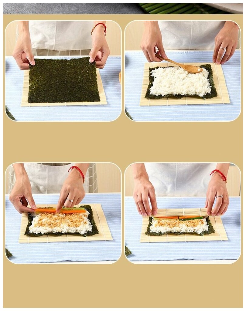 Циновка для приготовления роллов (бамбуковый коврик для суши, макису), 23х23 см, цвет бежевый интересное: