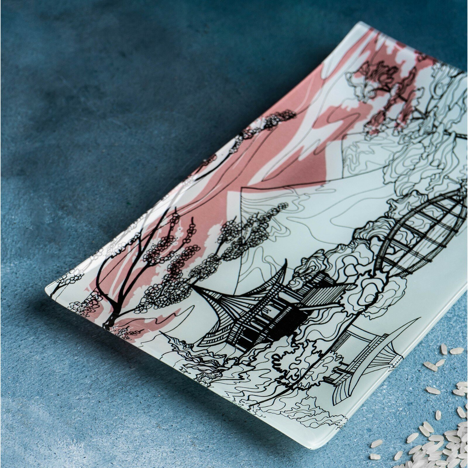 Набор для суши из стекла Доляна «Рассвет в горах», 3 предмета: соусники 8×2 см, 8×6 см, подставка 25×15×2 см