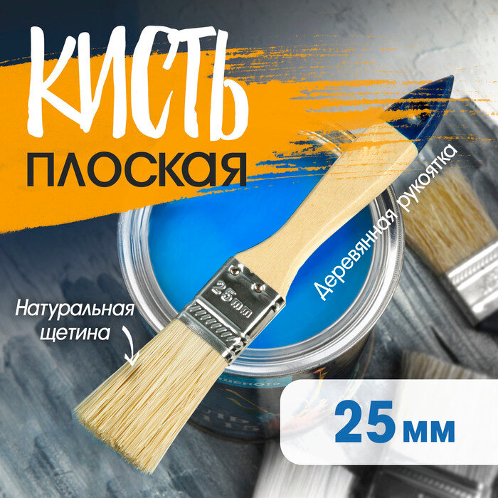Кисть плоская тундра, натуральная щетина, деревянная рукоятка, 1", 25 мм интересное: