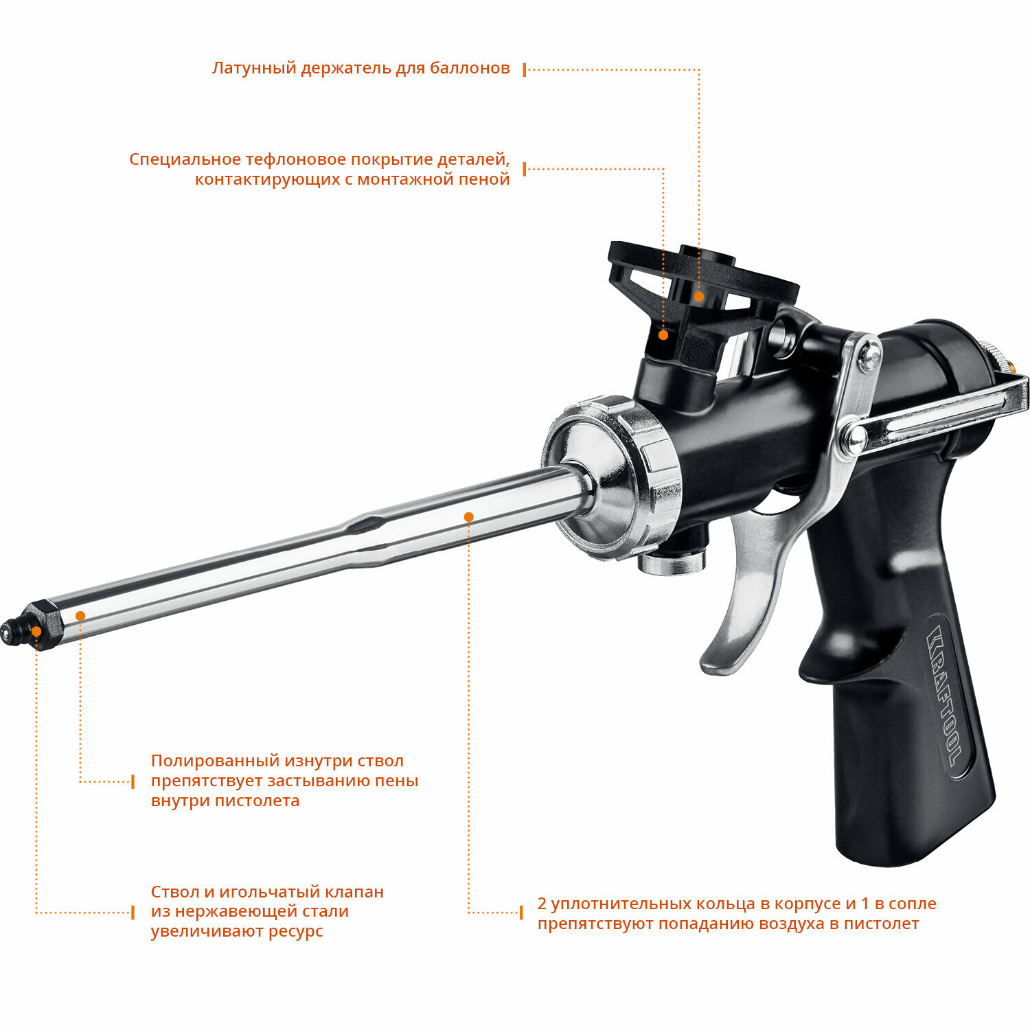 Купить Пистолет для монтажной пены KRAFTOOL "PRO" 06853, цельнометаллический