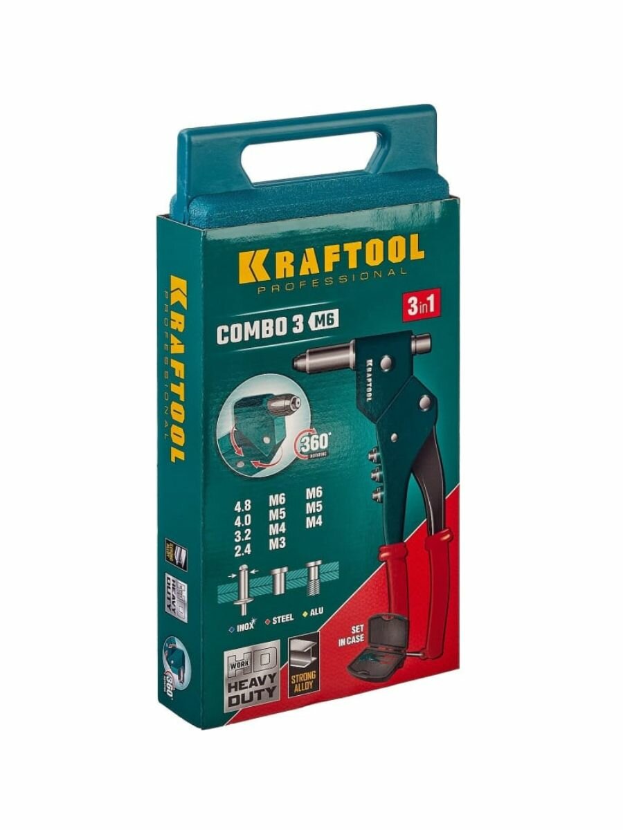 KRAFTOOL Combo3-M6, 360°, 3 вида заклёпок, комбинированный поворотный заклепочник в кейсе (31178)