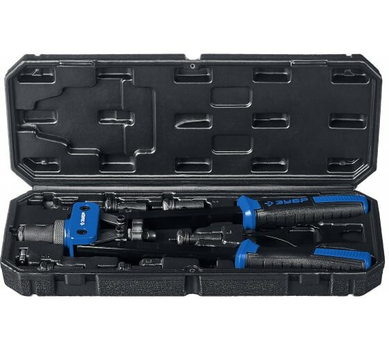 Купить Заклепочник двуручный для резьбовых заклепок в кейсе ЗУБР Р-М10 31056 + рабочие перчатки