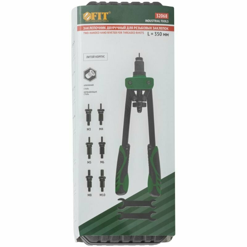 Купить Заклепочник комбинированный Fit Профи с поворотным механизмом 0-360 гр., для резьбовых заклепок М3-М6 и вытяжных заклепок 2,4-4,8 мм (270 мм), кейс
