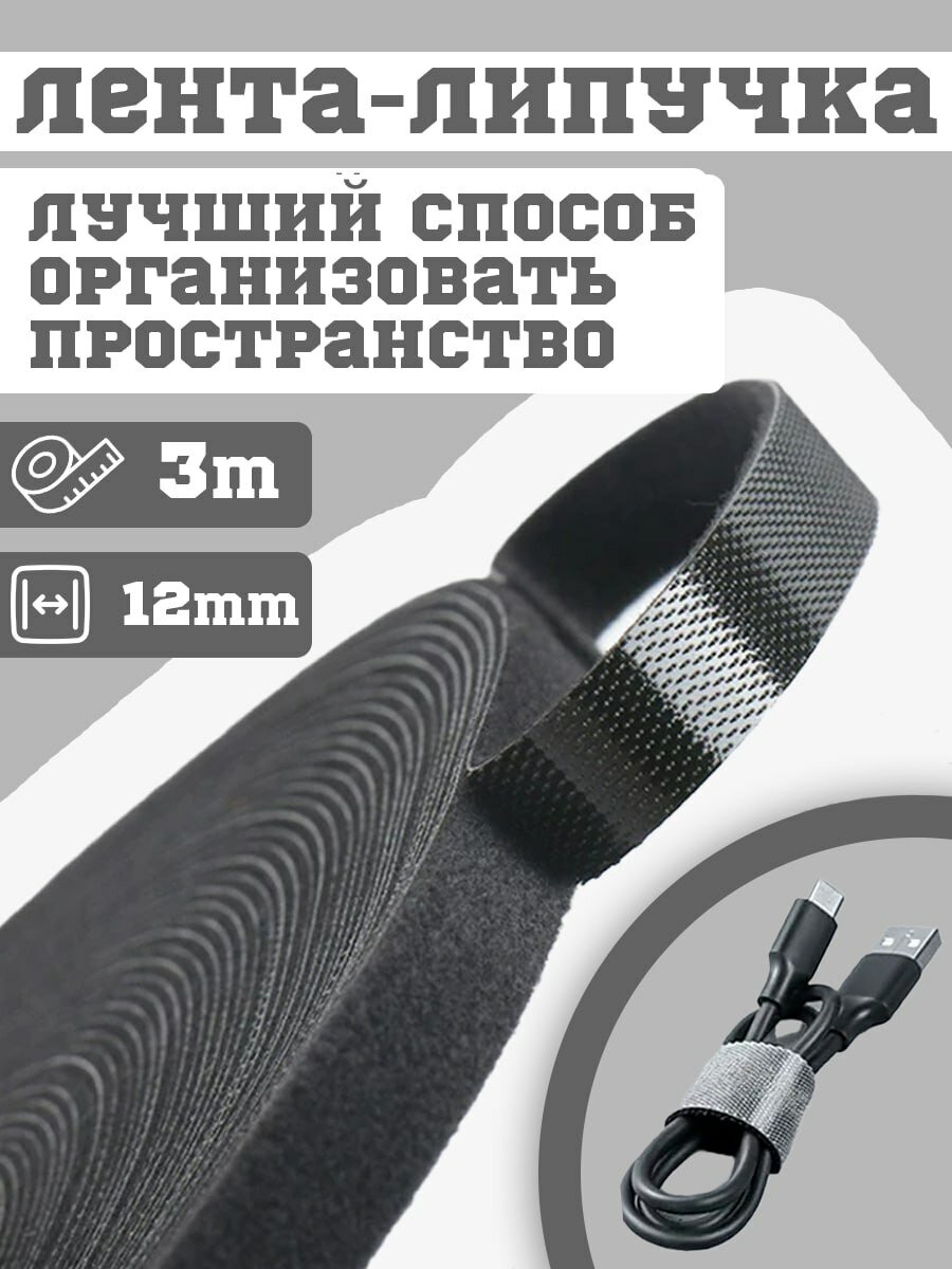 Лента липучка для проводов 3м Стяжка для проводов на липучке 12 мм многоразовые крючки, петли, кабельная стяжка, провода, ремешки интересное: