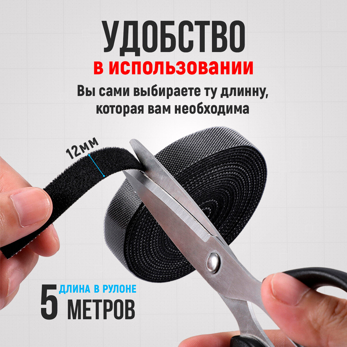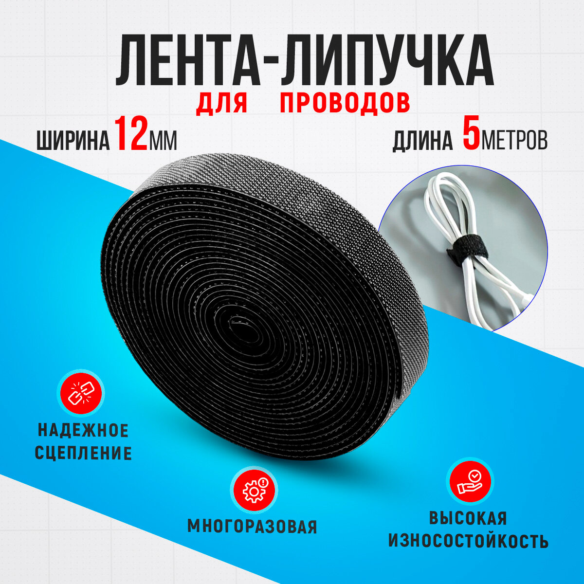 Купить Лента липучка для проводов 5м Стяжка для проводов на липучке 12 мм, Лента для подвязки растений