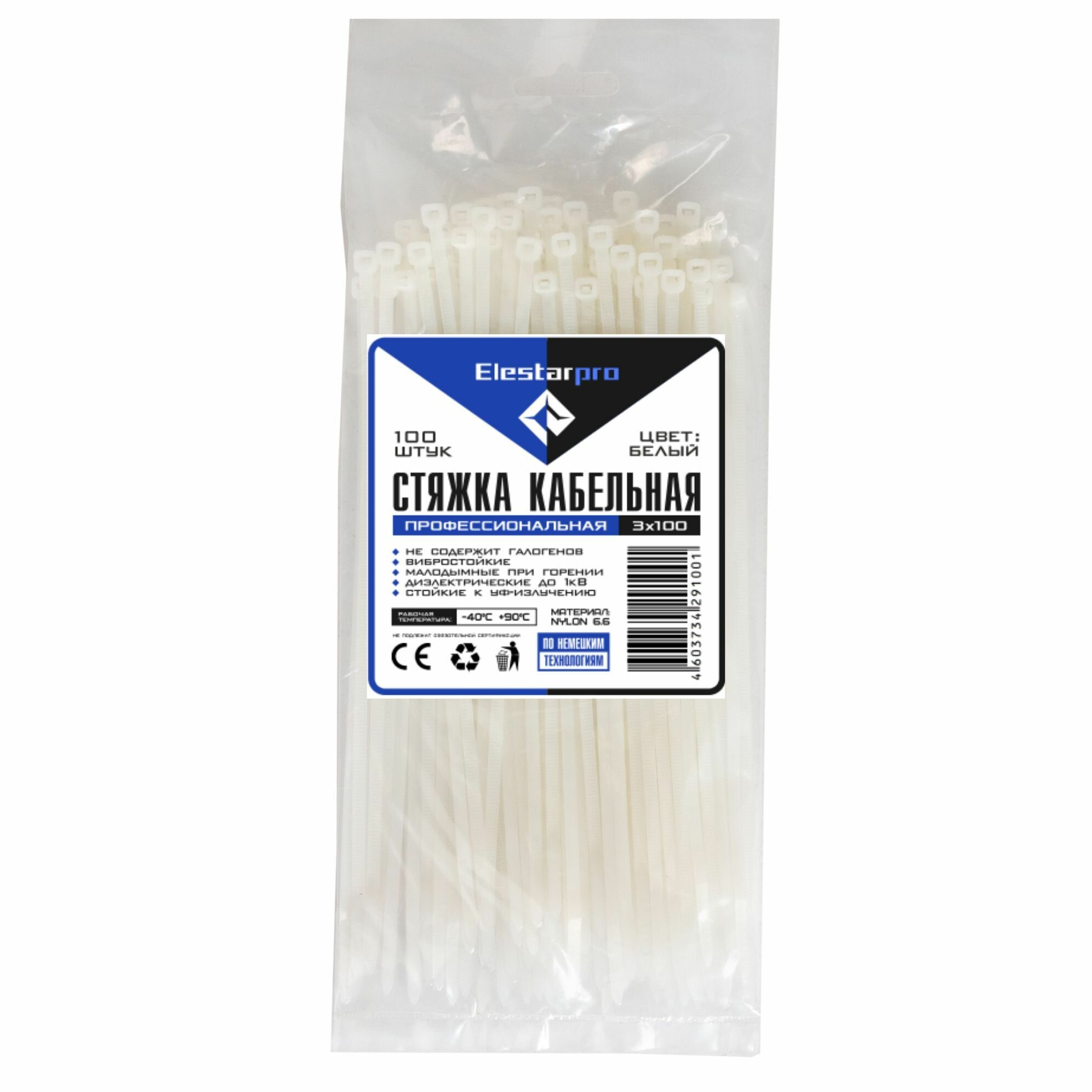 Купить Стяжка (хомут) нейлоновая пластиковая ElestarPro 3x100мм, 100 штук в упаковке белая