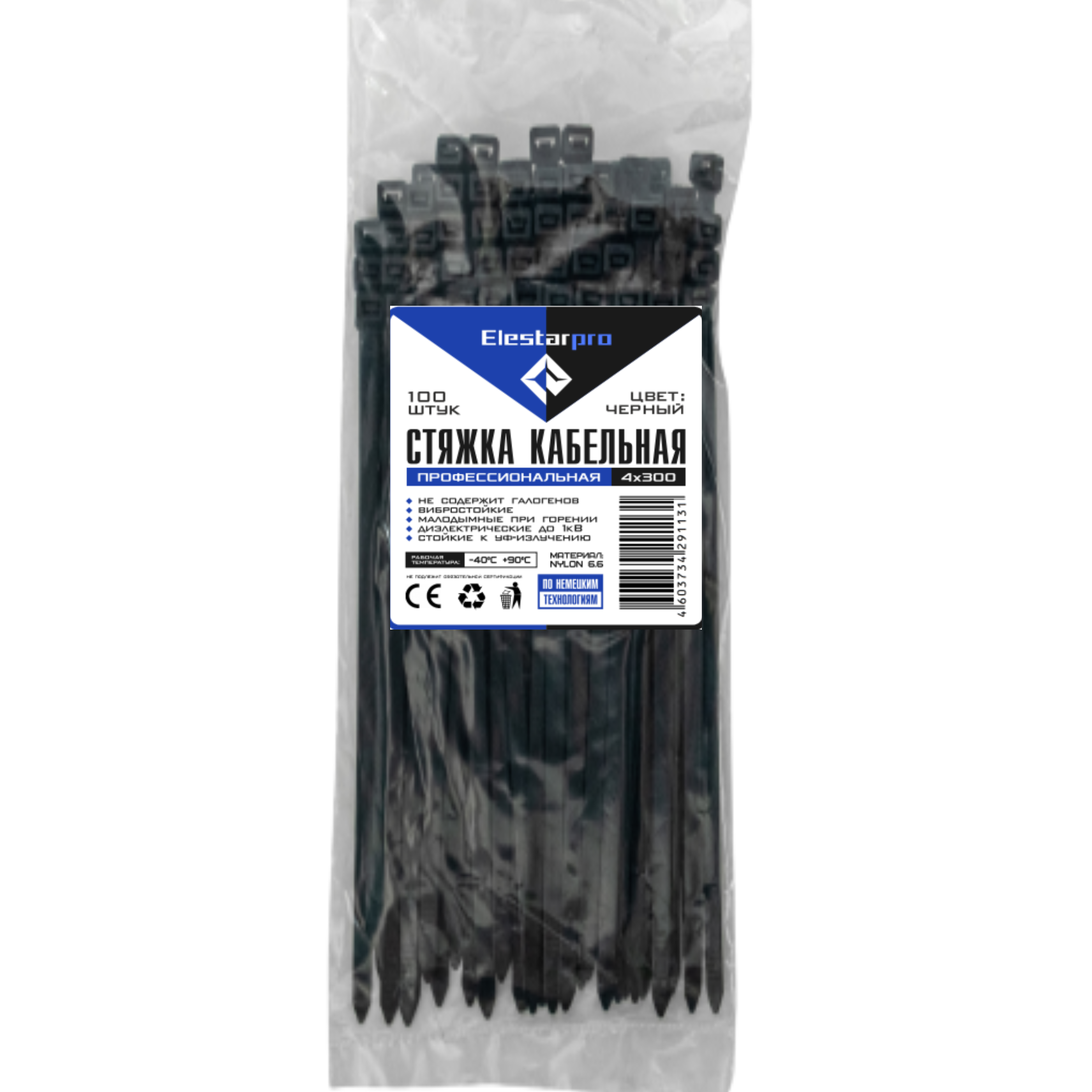 Купить Стяжка (хомут) нейлоновая пластиковая ElestarPro 4x300мм, 100 штук в упаковке черная
